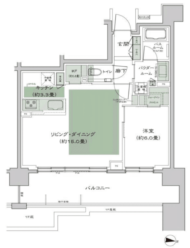 今の新築分譲マンションでは56㎡で2LDKも少なくない為、1人、2人暮らしでは困らなさそうな間取り。
