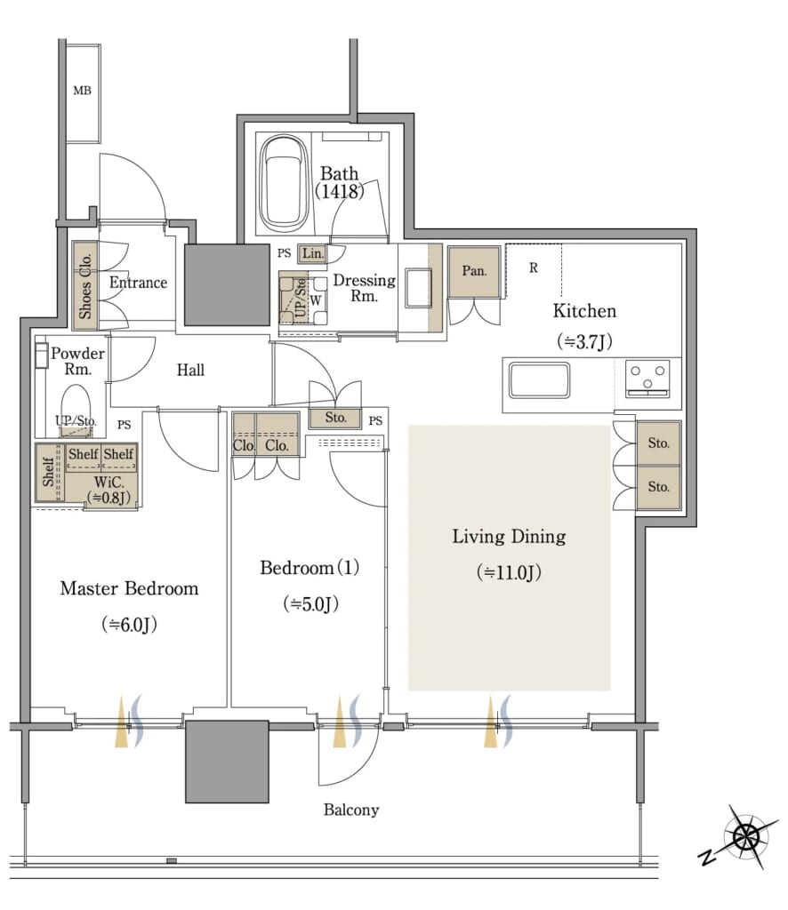Ewタイプ 60.66㎡ 2LDK 西北西向き