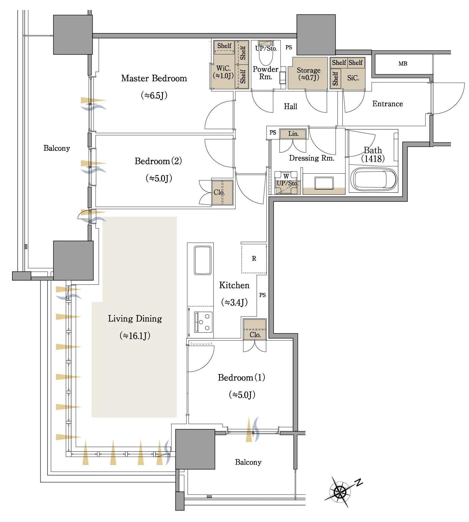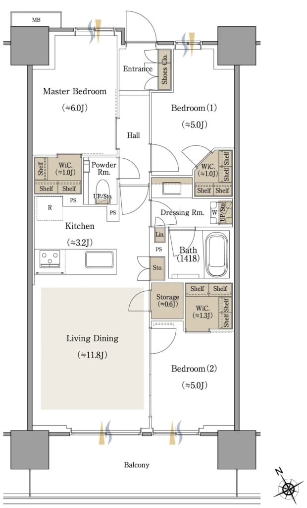 Hwタイプ 69.02㎡ 3LDK 南南西向き