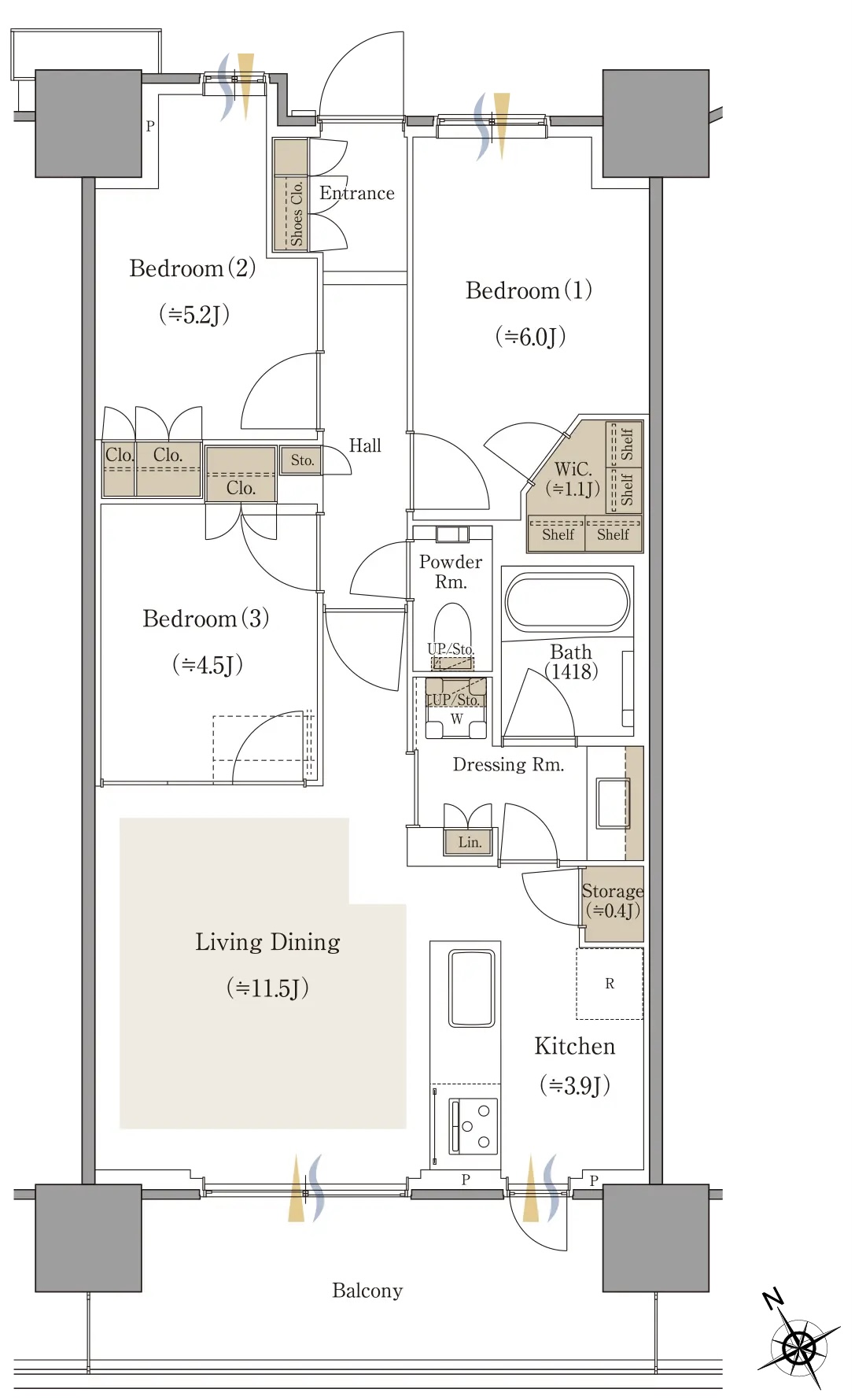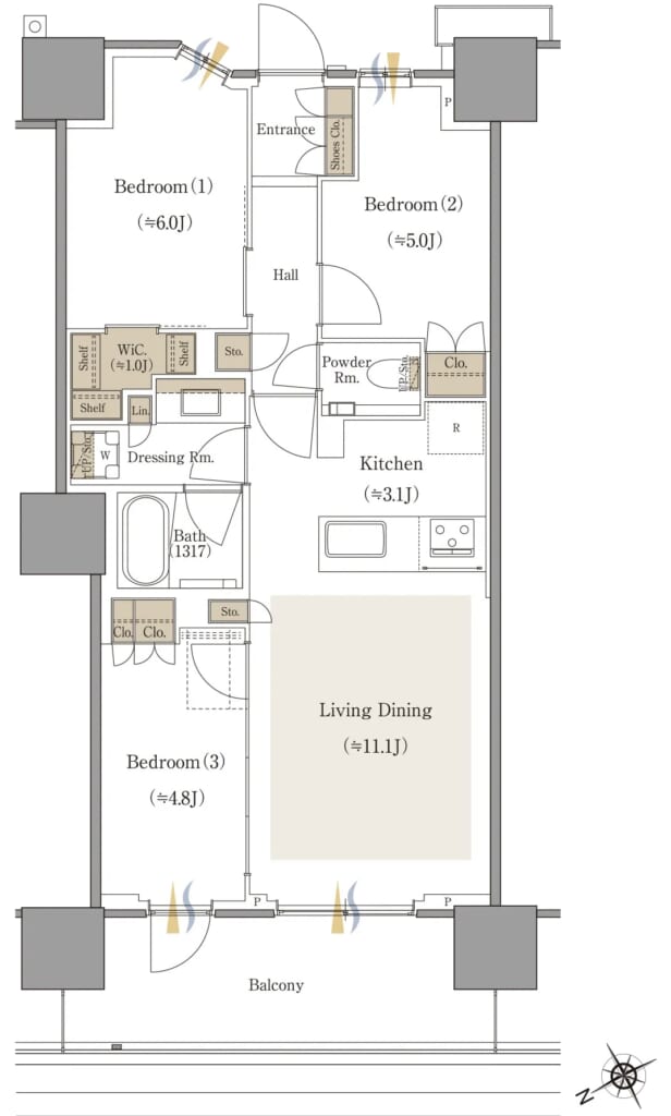 Dseタイプ 82.76㎡ 3LDK 南南西向き