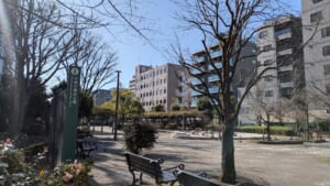 (東)エントランス・ベランダ側には6階建ての保育園があります。「パークホームズ錦糸町北斎通り」は周囲の建物と比べると高さがある建物という訳でもないので、眺望がスッキリするのは最上階(7階)くらいな気がします。