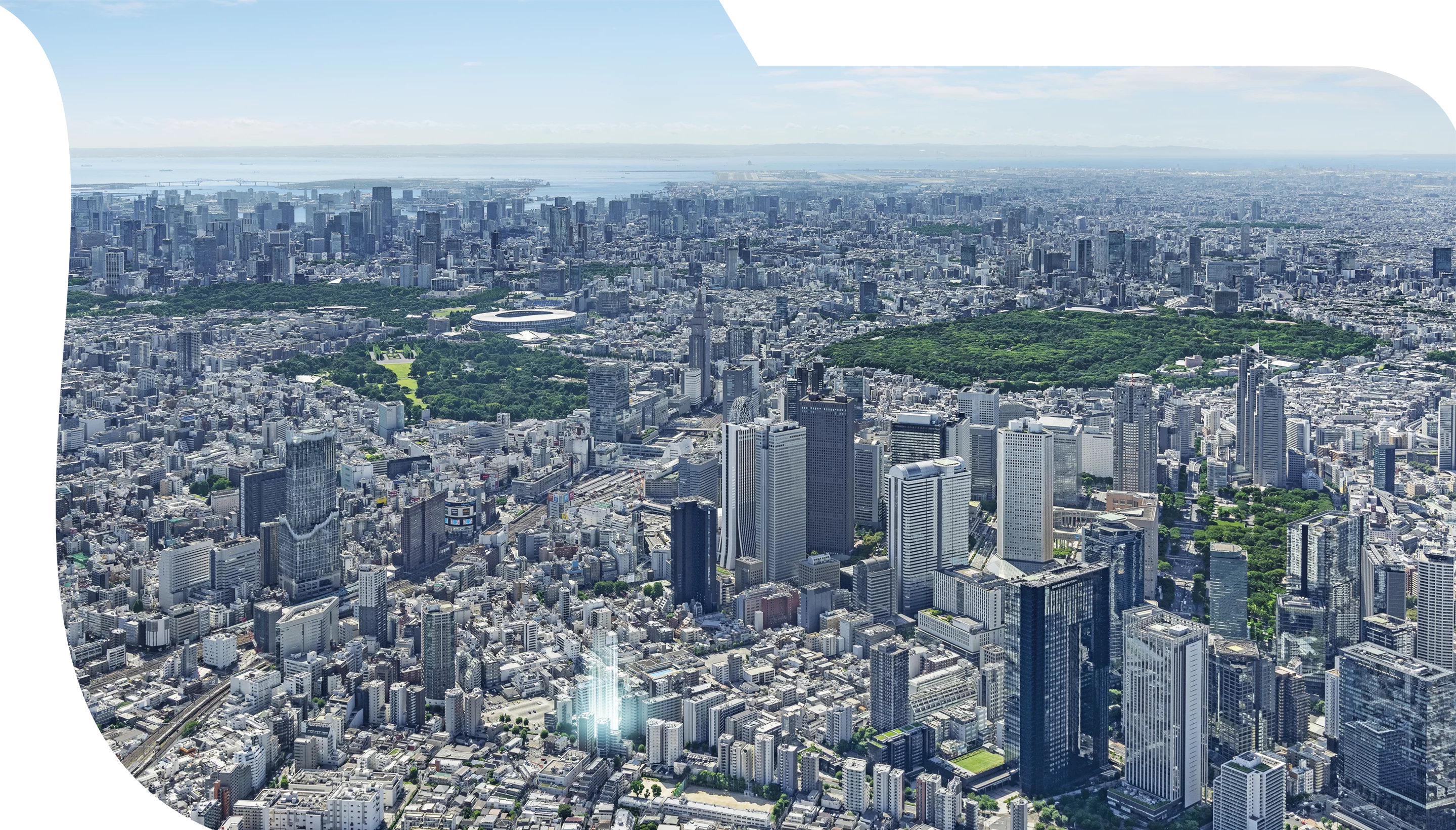 東西に広がる開放的な砧公園ビューと都心ビュー。