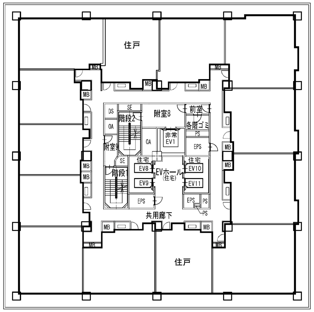 内廊下で各階ゴミ置き場ありと、タワマンらしい設計になっています