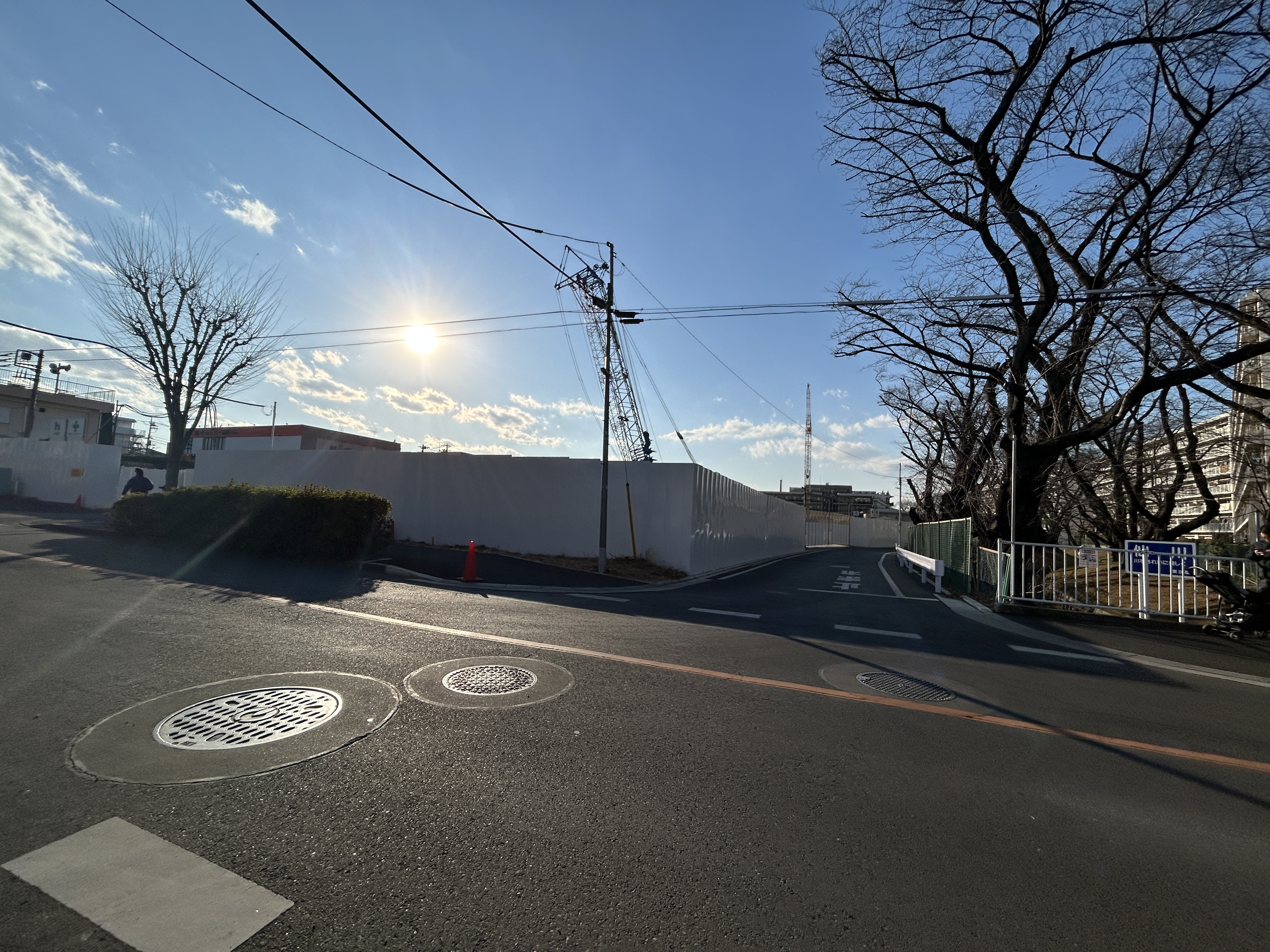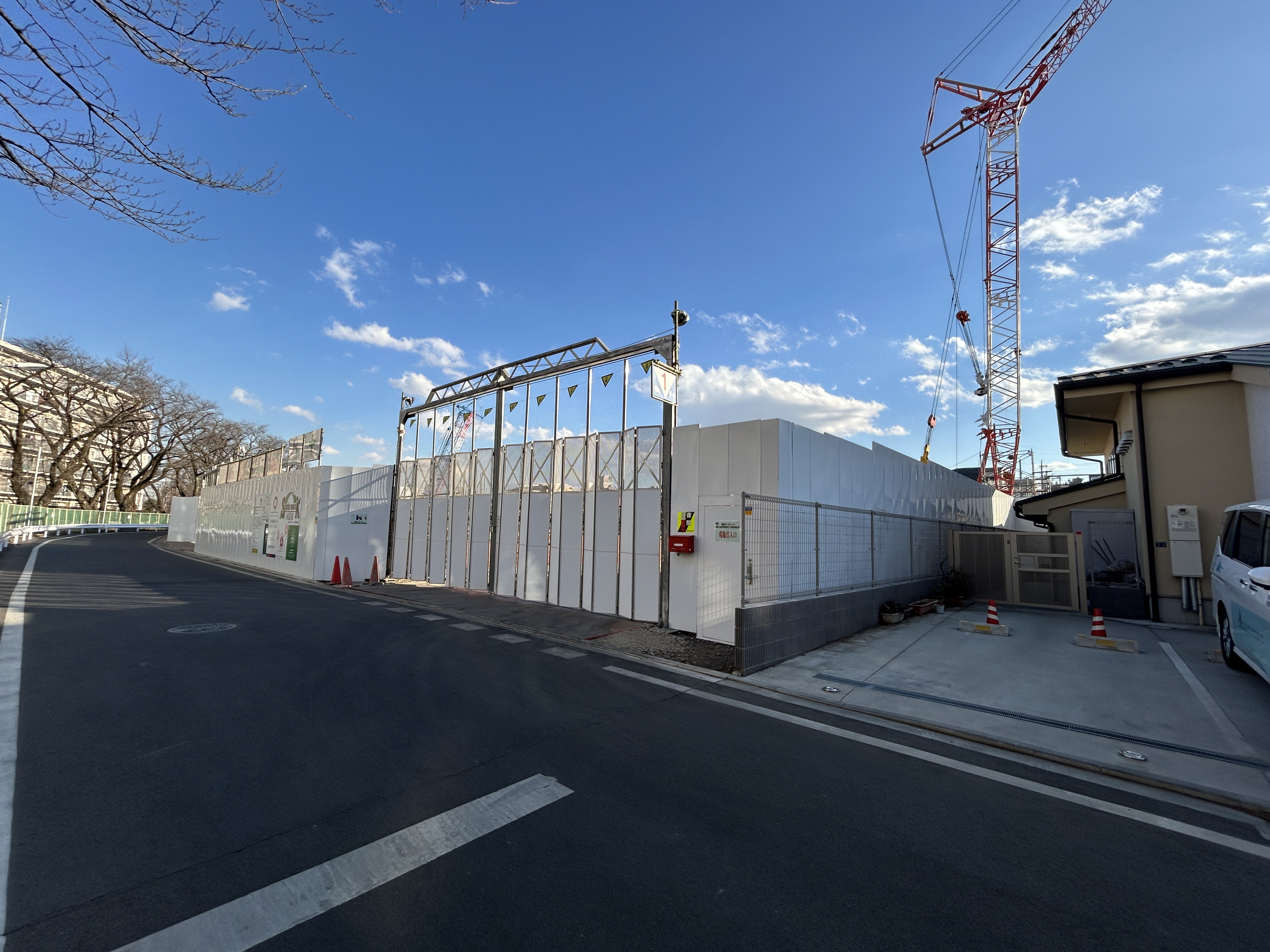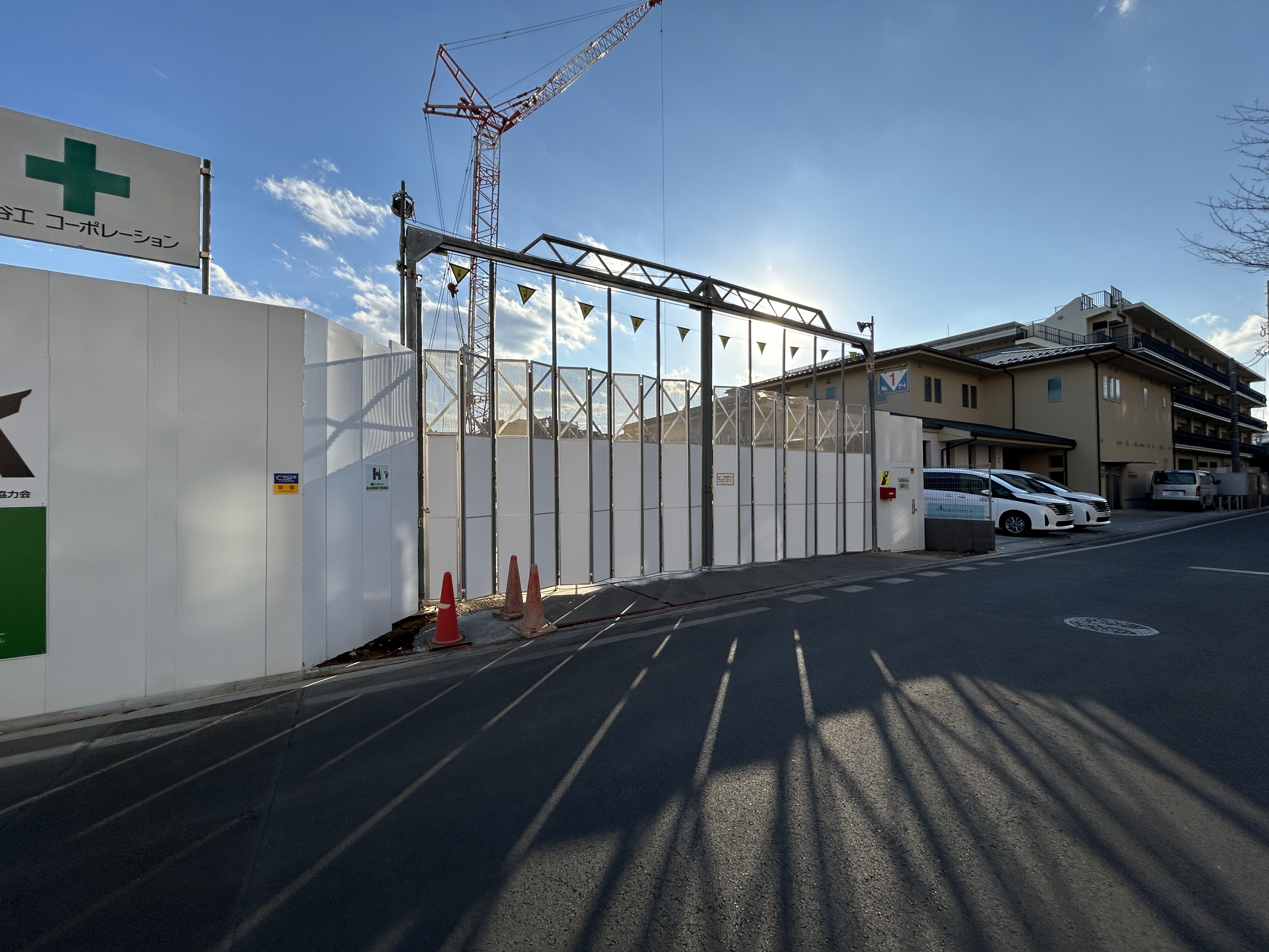 ▼東側道路に面して設置されているゲートです。完成後、メインエントランスへのアプローチとなります。