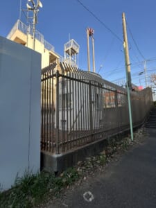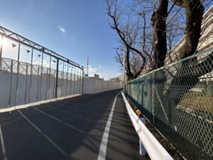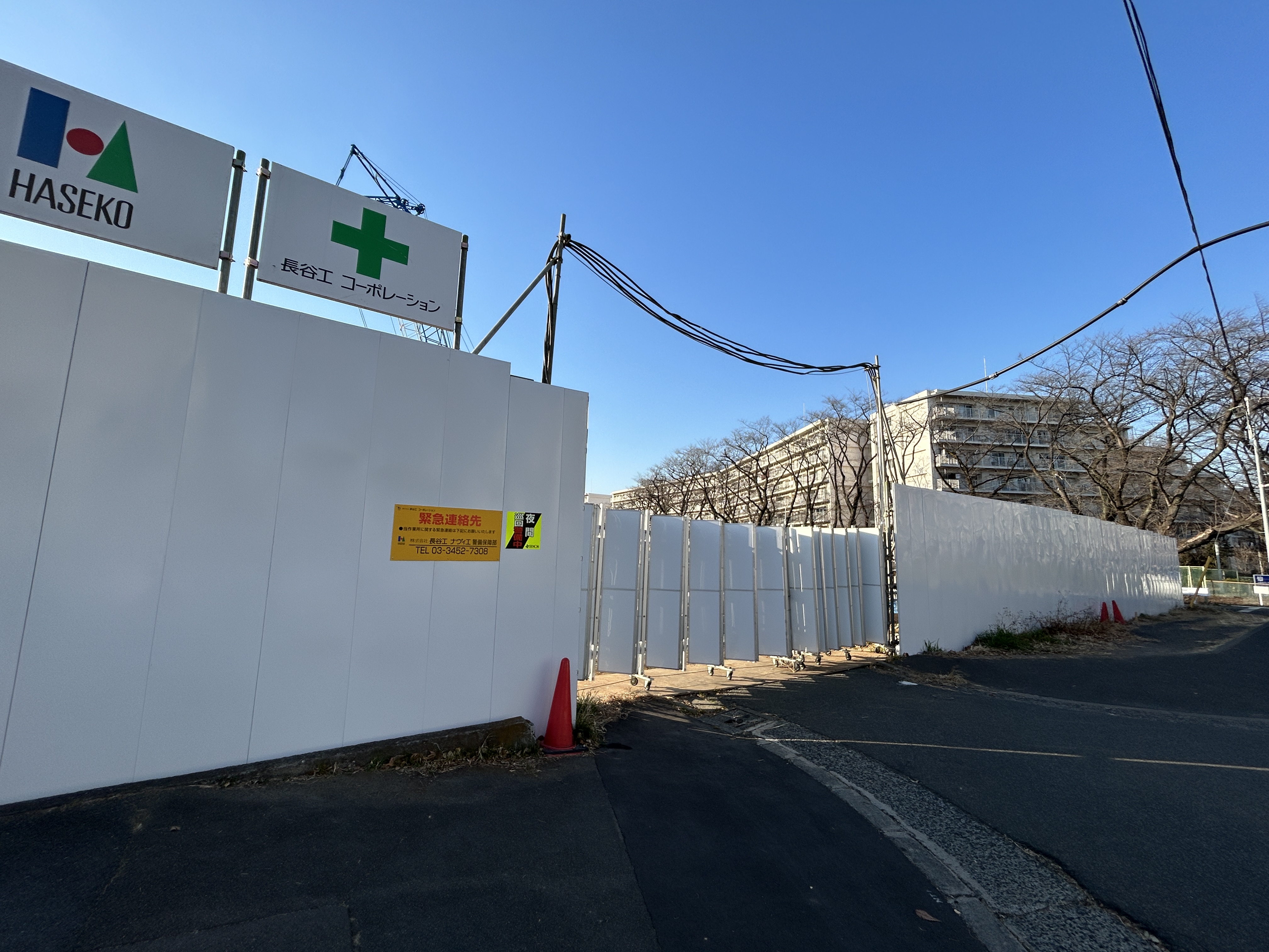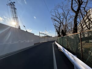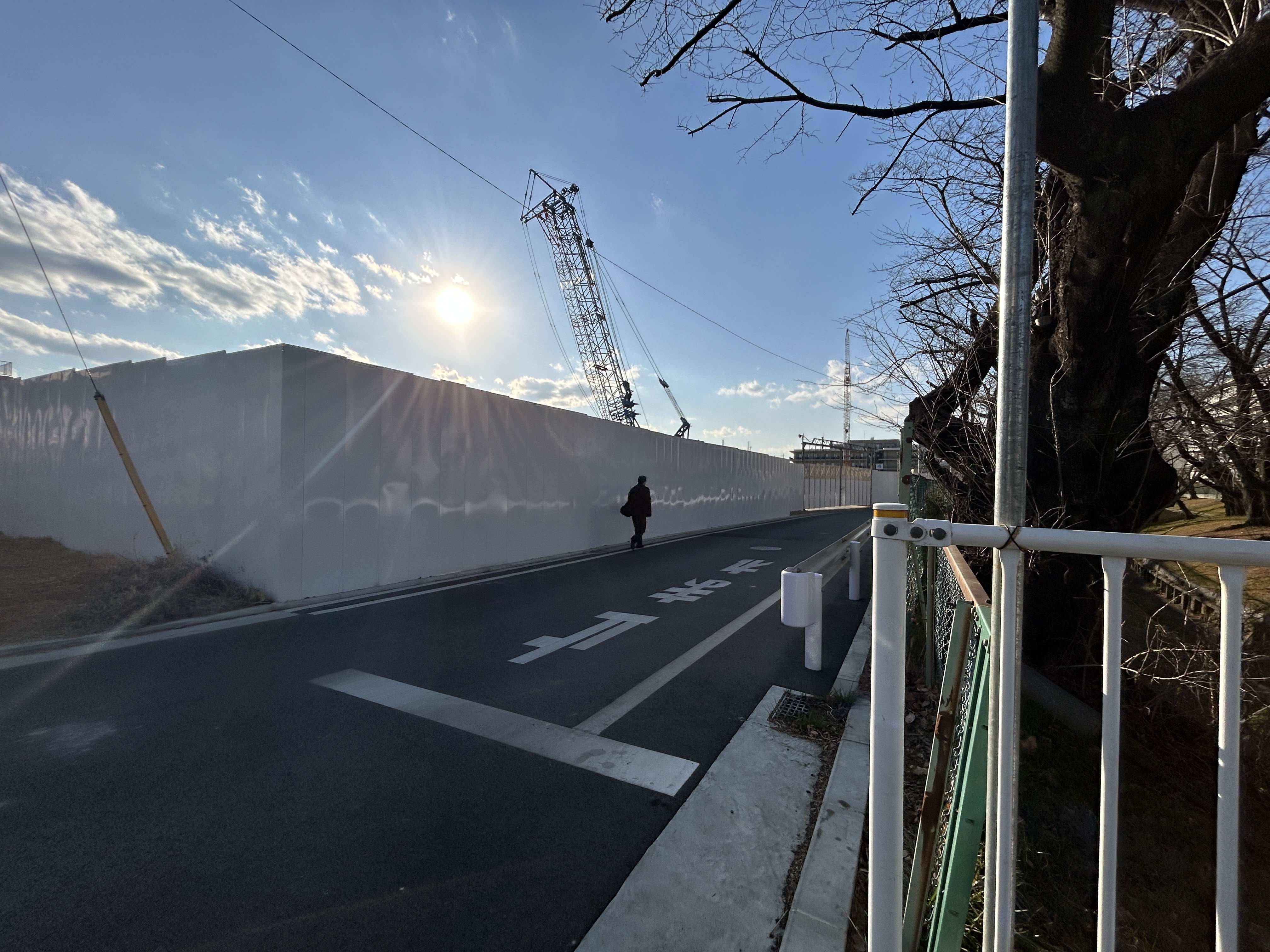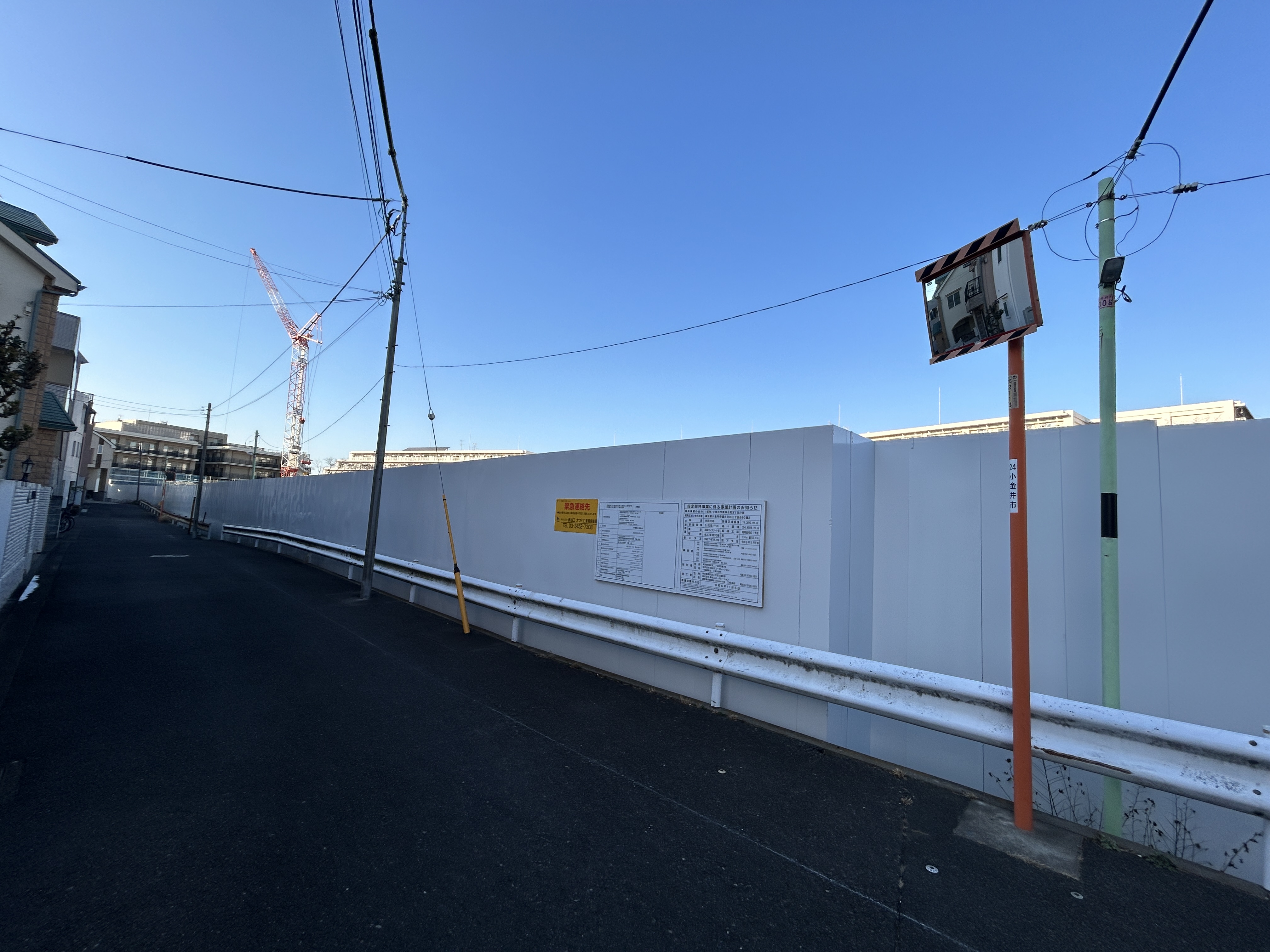 ▼東側道路に面して設置されているゲートです。完成後、メインエントランスへのアプローチとなります。