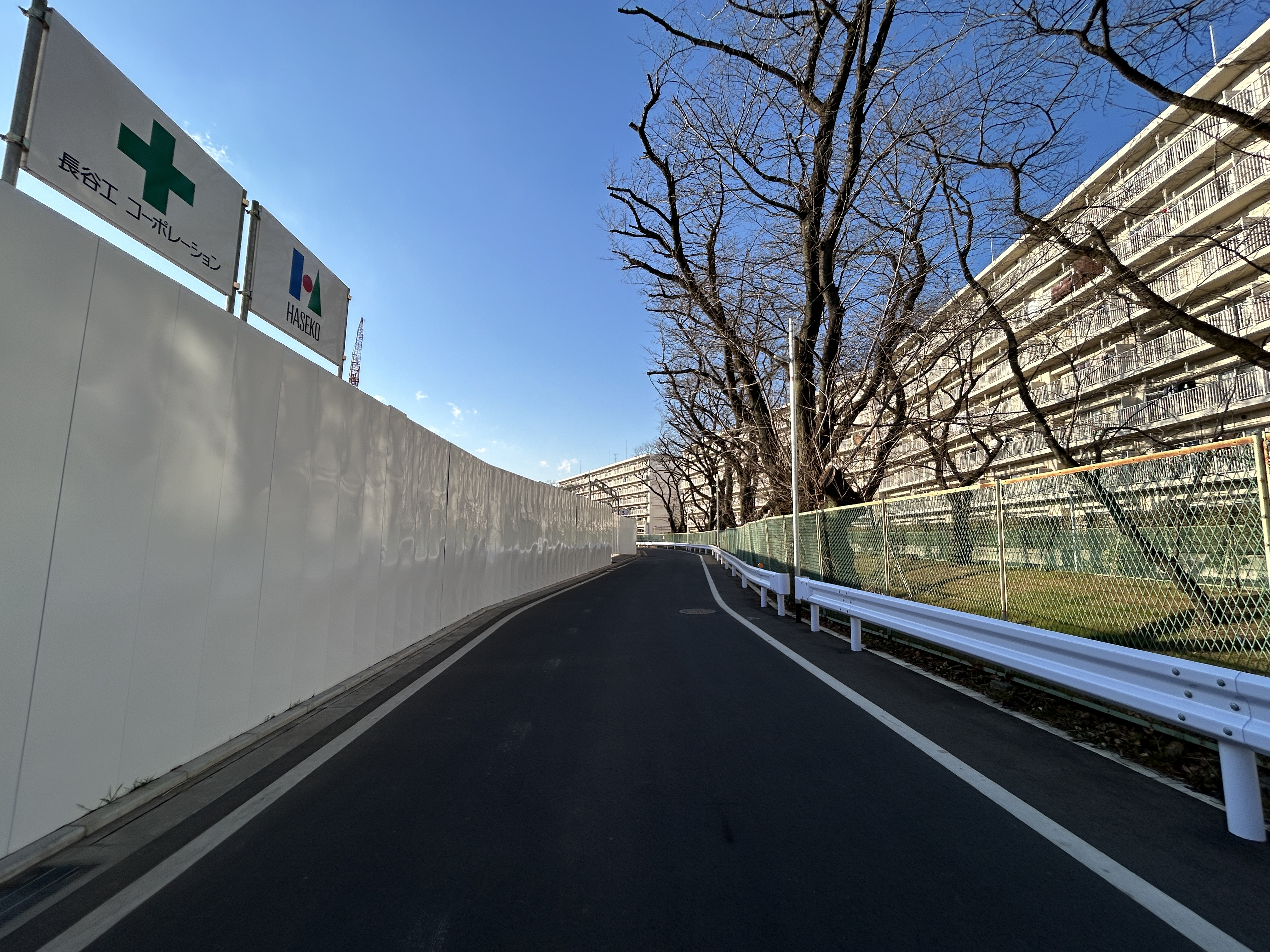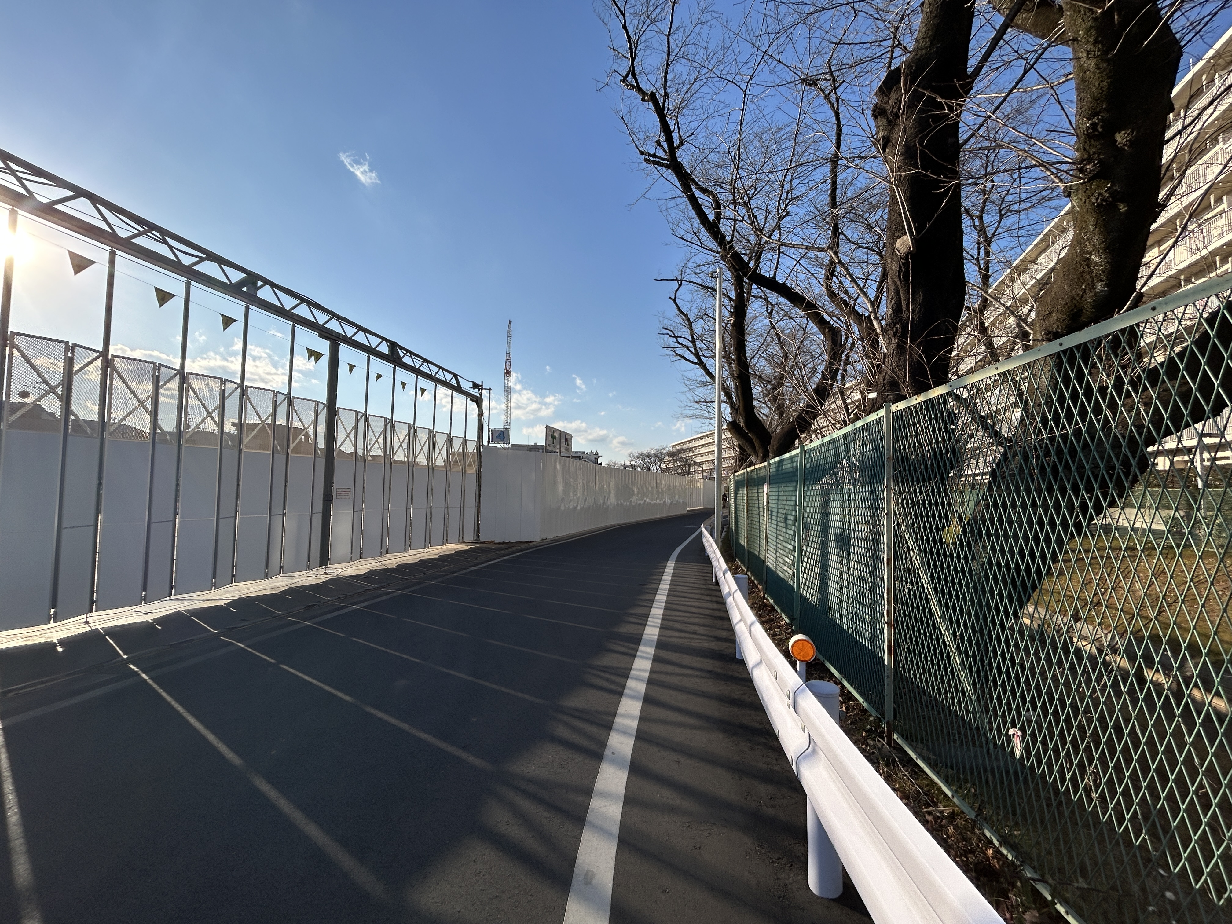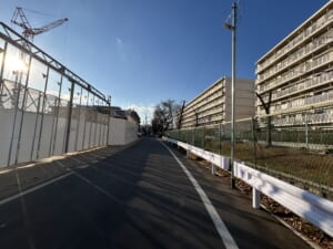 ▼北側の道路にやってきました。北側の道路は歩車分離されていませんが、現地滞在中の15分間の間に、車が通ることは全くありませんでした。北側にある公務員住宅との出入りの際に、この道を利用している方がいました。