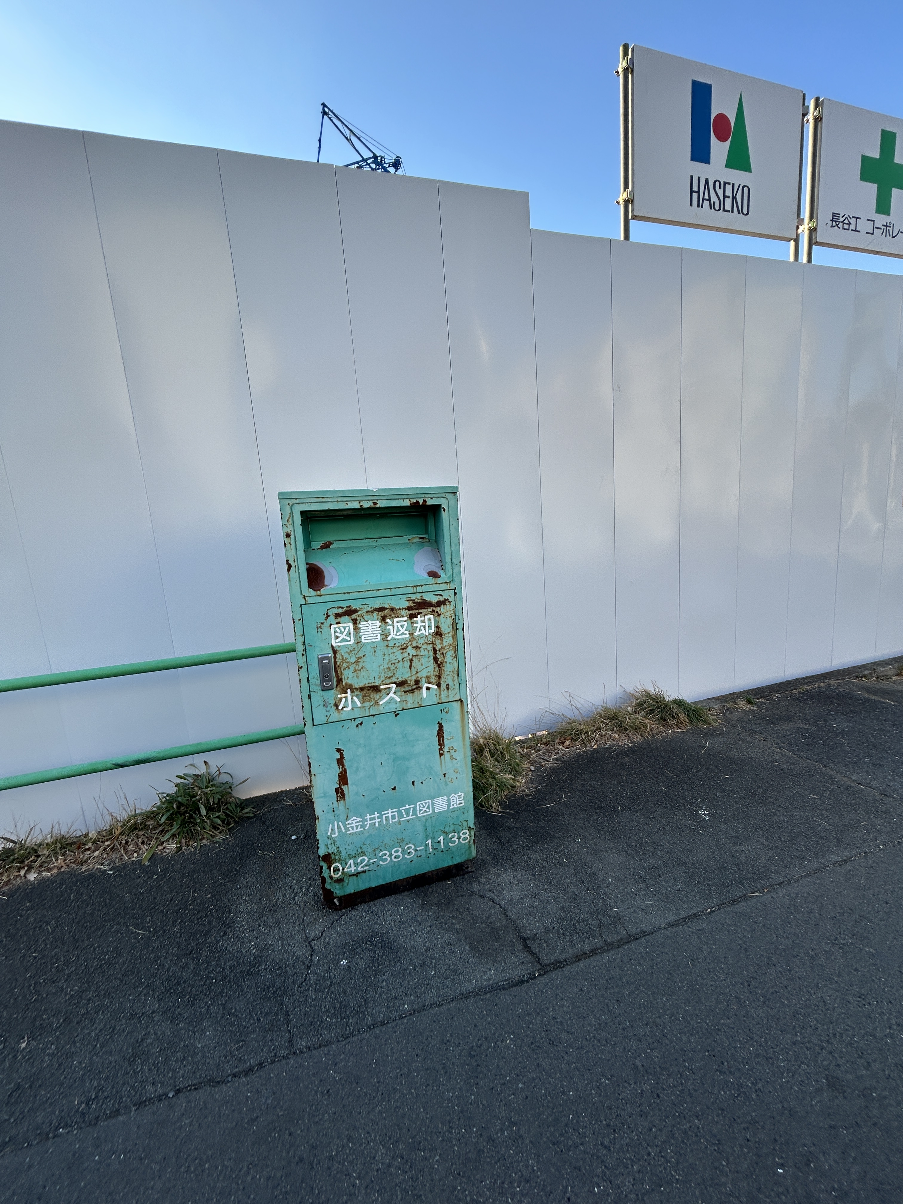 ▼メインエントランスとなる場所のすぐ近くに、図書館返却ポストがありました。小金井市立図書館まで歩くと27分もかかるのでここにポストがあるのは、意外と便利かもしれません。