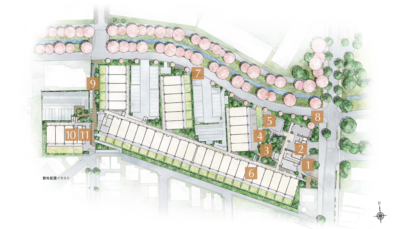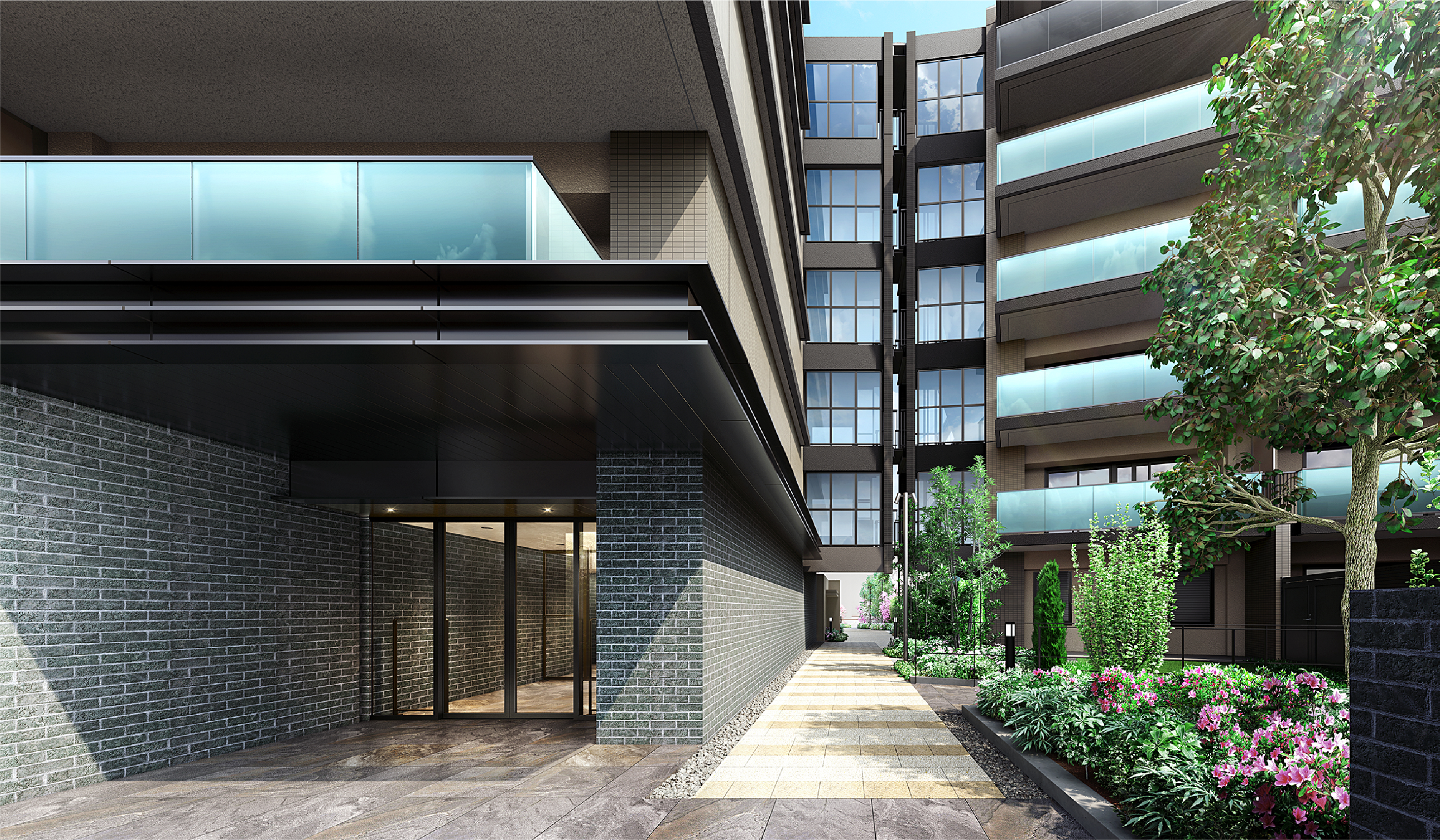 サブエントランスの位置に敷地を南北に貫通する通路が設けられ、地域住民の方も通り抜けできるようになる計画です。