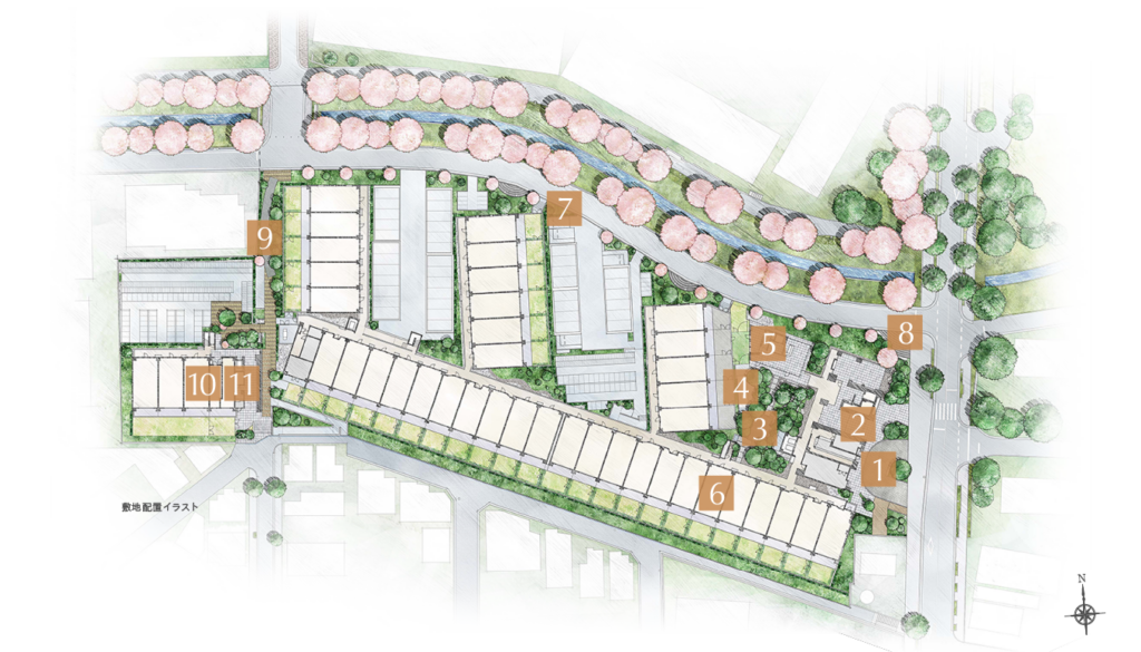 ▼現在進んでいる道沿いには南向き住戸ができます。1階はテラス付き住戸になっていますよ。