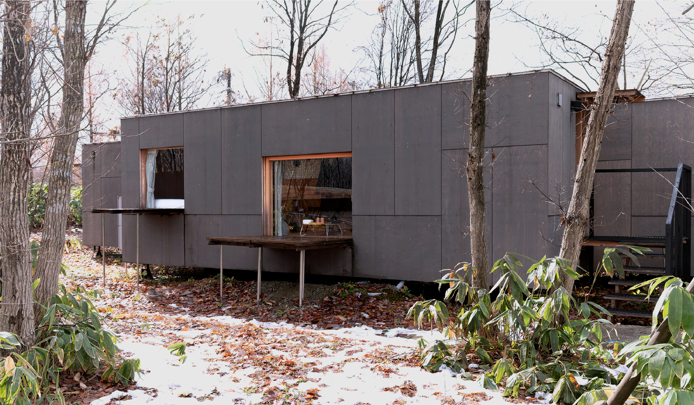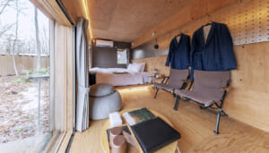 スノーピークと隈研吾氏が共同開発した、モバイルハウス「住箱」が中庭に設置されます。