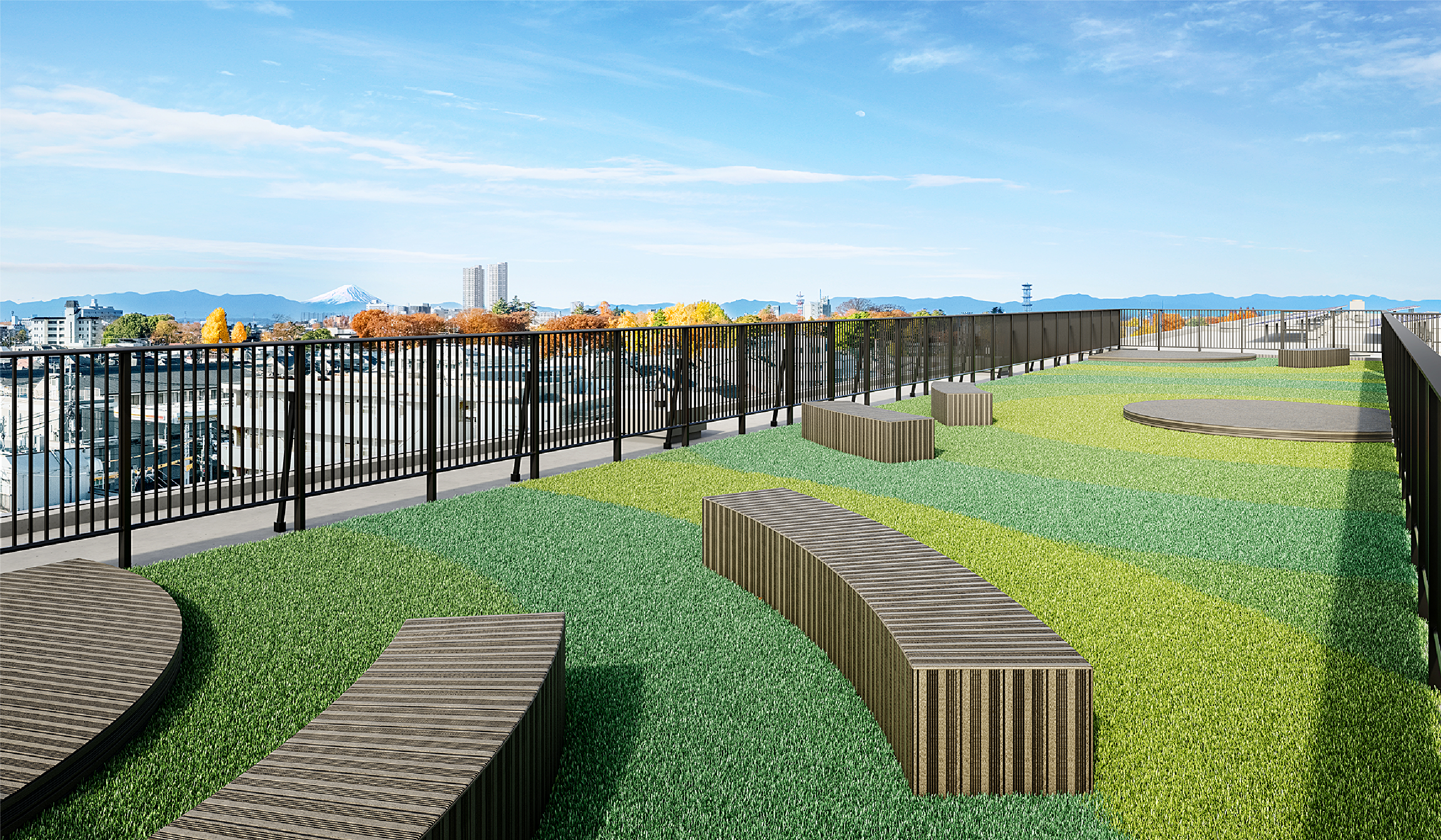 これでもかと憩いの場を用意してくれています。天気が良ければ富士山を眺めることができ、のびのび寛げる場所ですね。休日になると自宅で居場所がなくなったパパが気分転換をしているのが想像できます・・・!