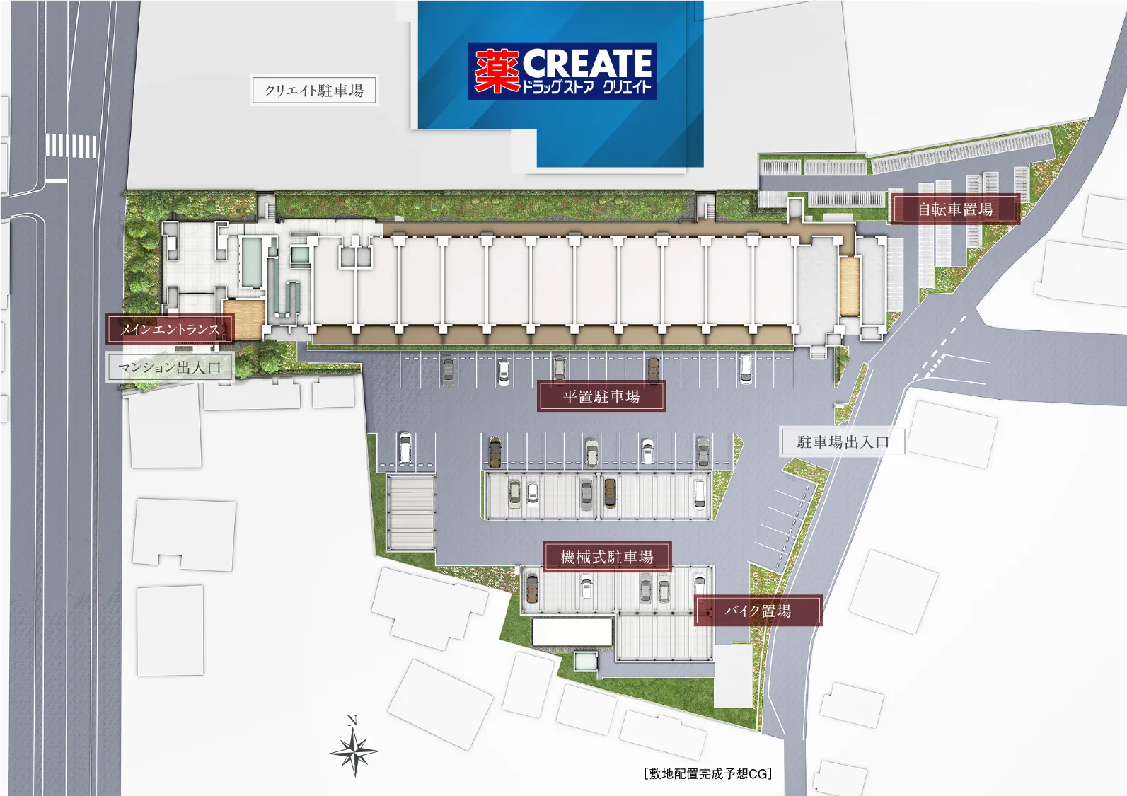 物件の隣にドラッグストアクリエイトが新規出店するのは嬉しいところ