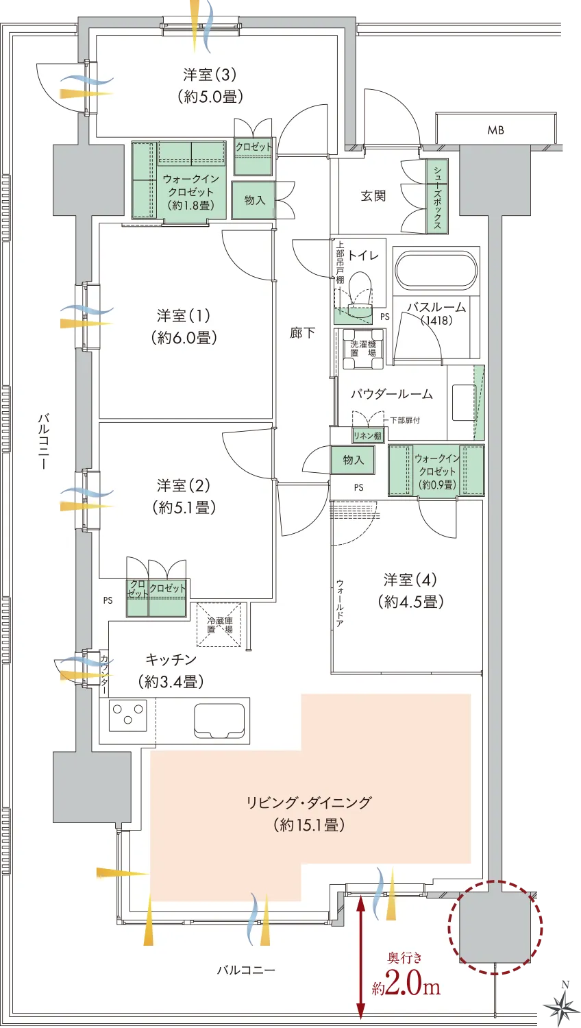 オーソドックスな田の字で誰もが満足しやすく、将来売却することになっても売りやすい間取りです