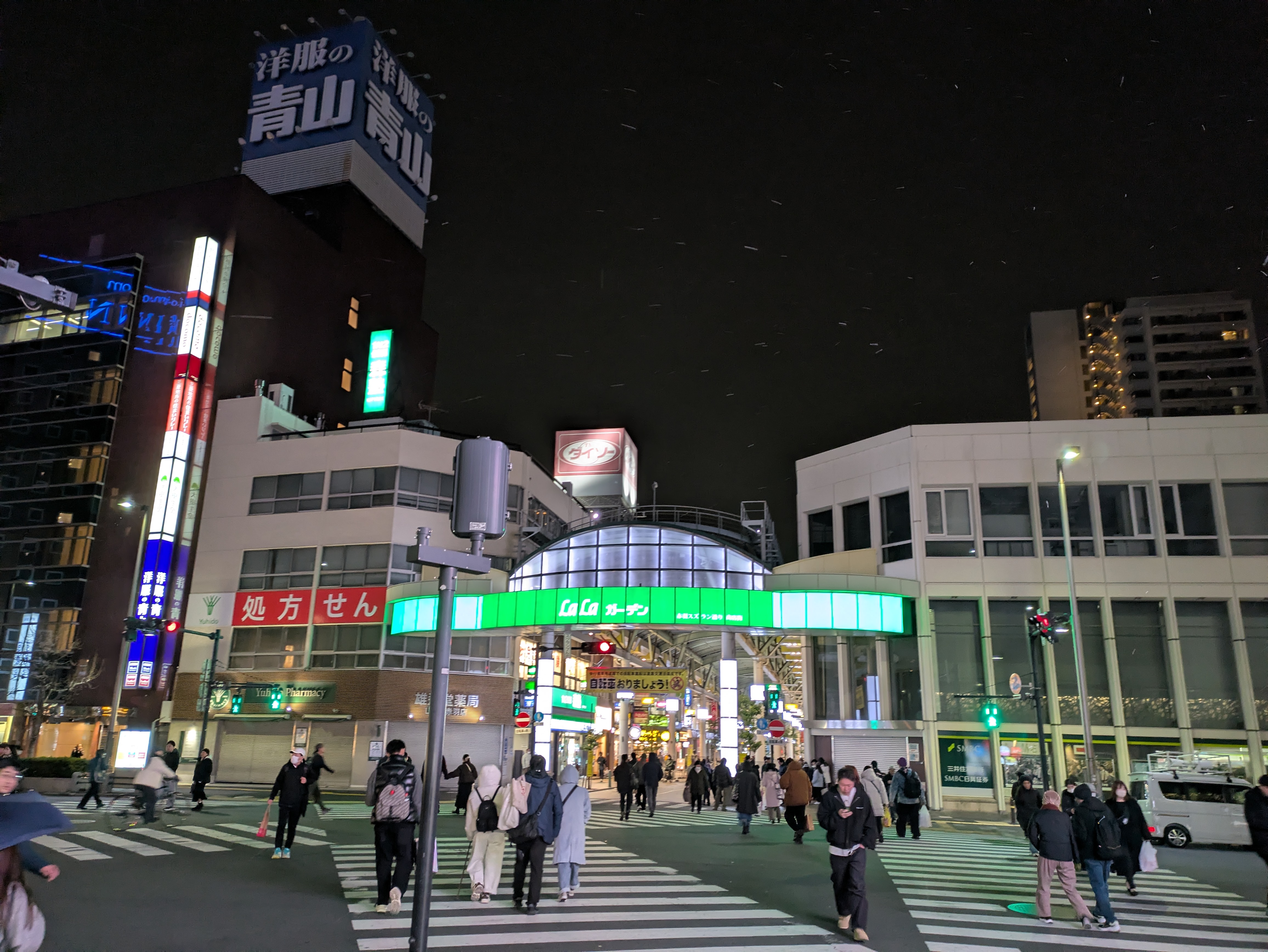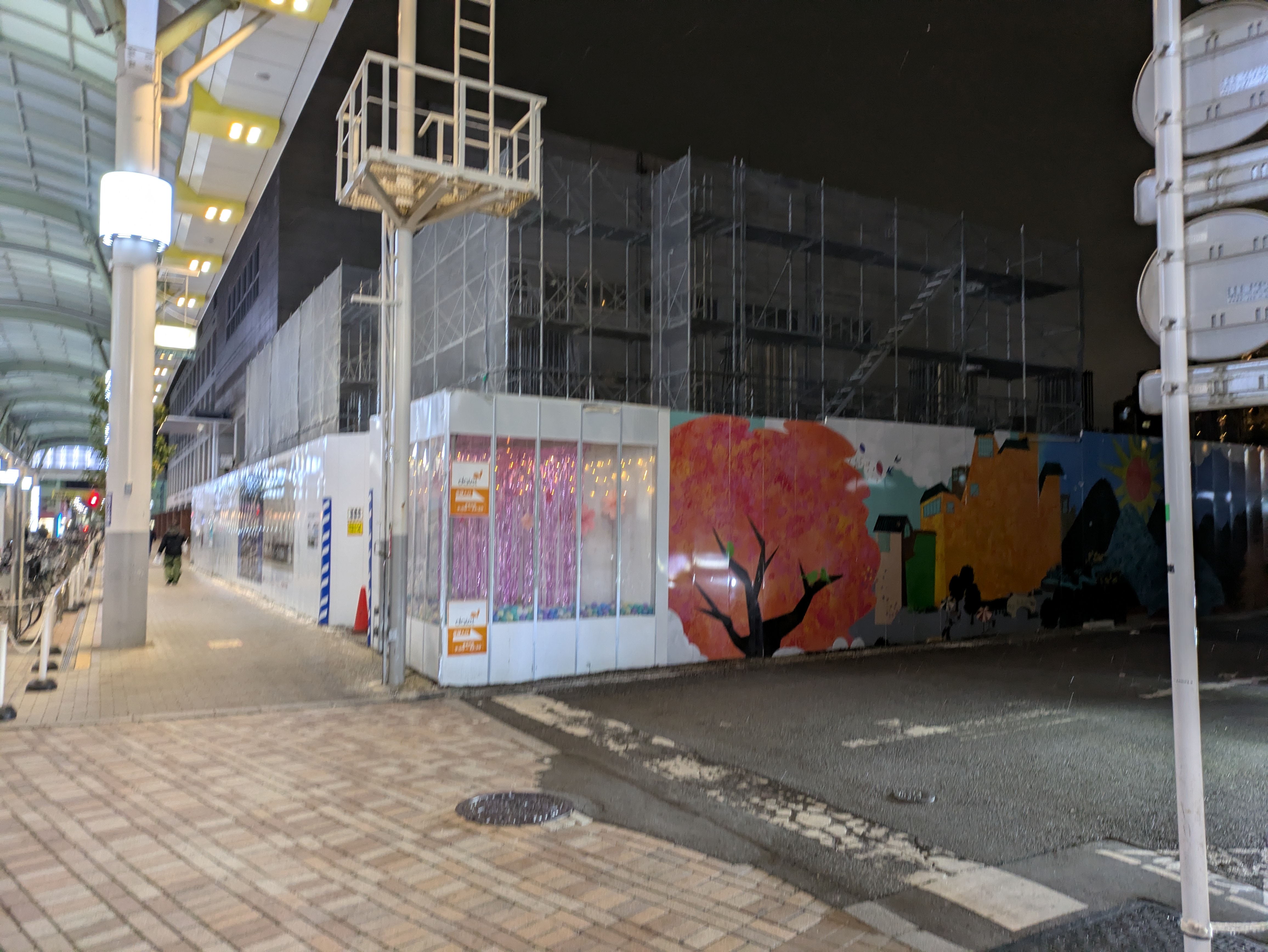東側は言わずもがな、人通りが多く賑やかです。商店街も明るいため夜道は光に照らされた道を通って帰宅することになるかと思います。なお、人通りは多く信号もあるためか、駅から開発地まで歩いた体感としては徒歩6分以上かかったようにも感じました。駅からは少し離れますが、賑やかで明るい道を歩ける点ではポジティブかもしれませんし、飲み屋街が近くにあるため道路が汚れにくい可能性もある点ではネガティブかもしれません。