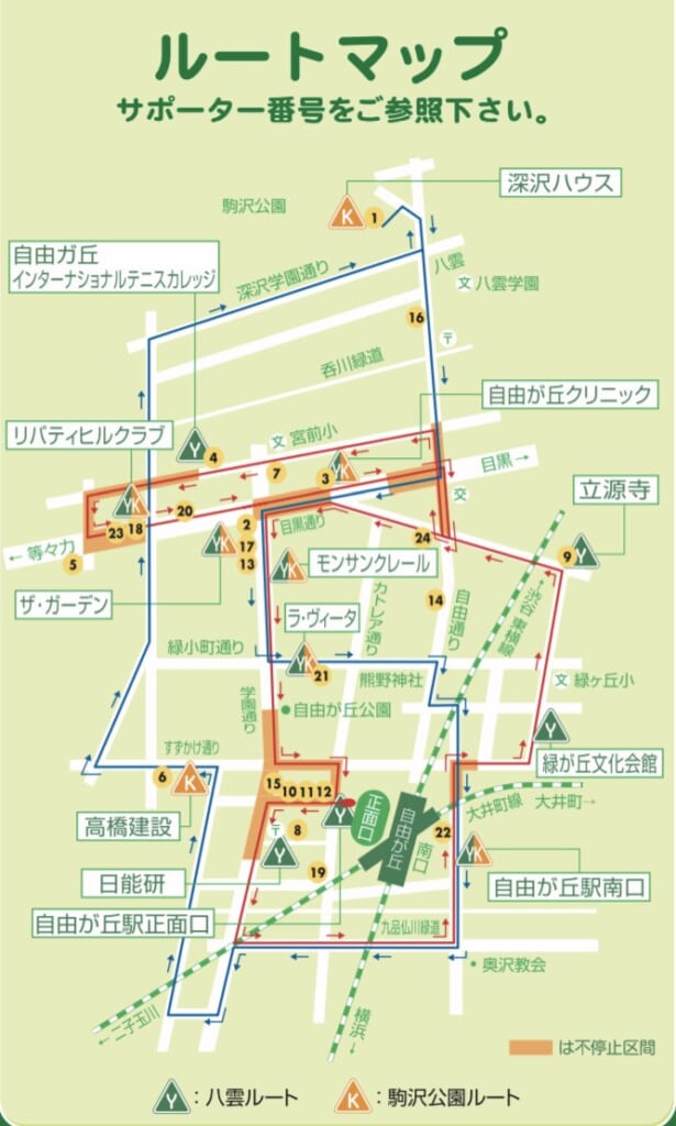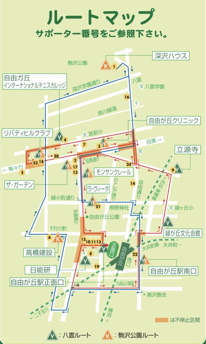 自由が丘駅周辺ではコミュニティバスのサンクスネイチャーバスも活躍中。ちょうど「モンサンクレール」前がプラウド自由が丘ヒルトップの目の前になります。無料で20年以上前から走っている、地域の貴重な足ですので、この場を借りて認知度アップ出来ると嬉しいです
