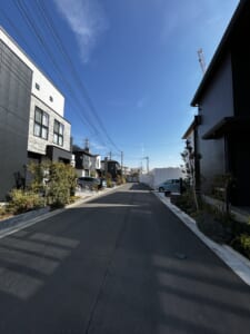 敷地配置図には北西角の白抜き部分がありますが、そこには新しく綺麗な戸建てが建ち並んでいます。周辺の街並みが整っているの点も良いですね!