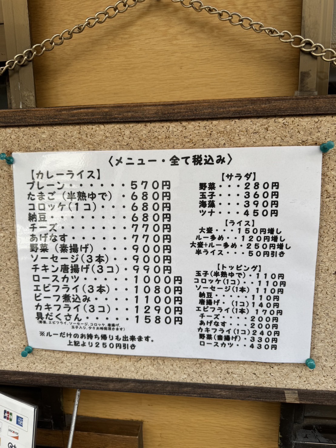 ▼並んでいる間にメニューを見ます。お手頃な価格帯だ・・・!!トッピングの種類がたくさん。自分の好みにカスタマイズできます。