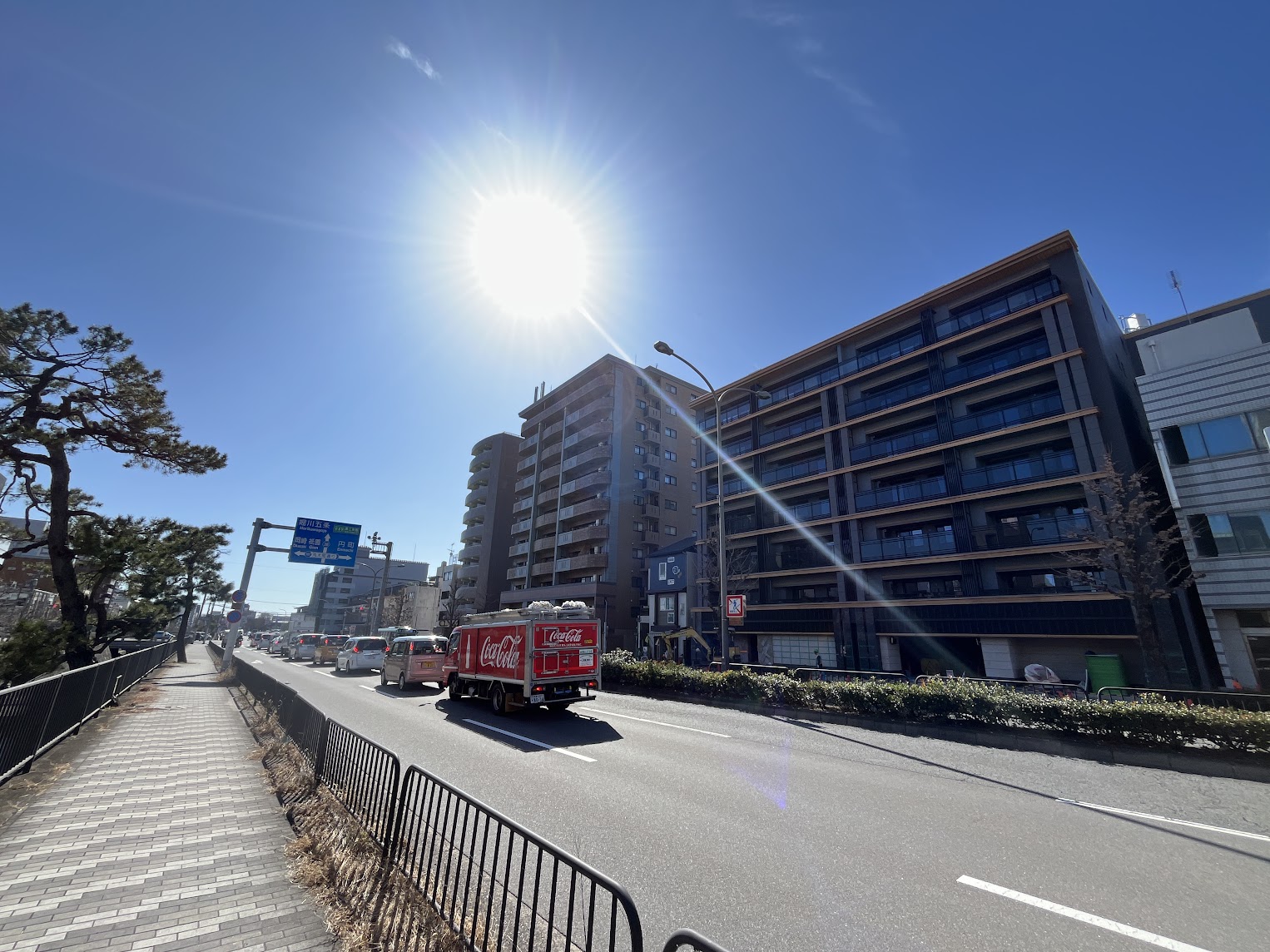 堀川通沿いは交通量が多いため住むイメージが湧きづらかったのですが、いつの間にその価値観も変わってきました。写真は堀川通沿い『プラウド京都四条堀川』