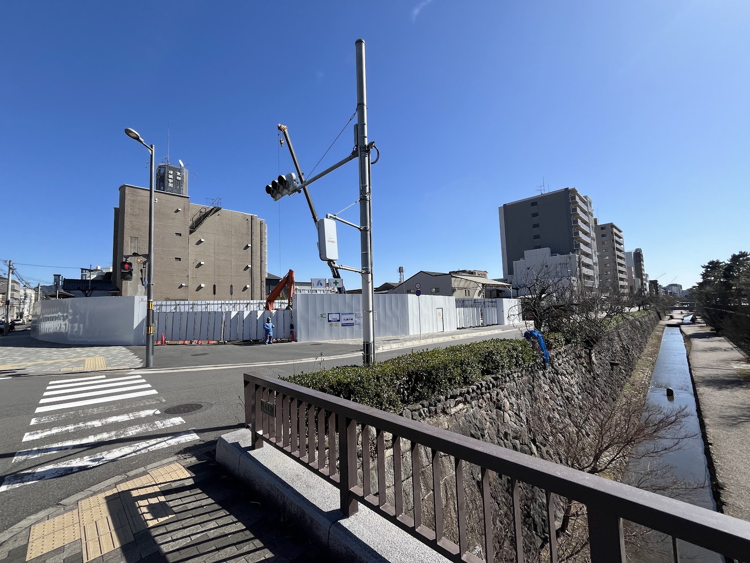 そして今度は北へ向かい堀川御池南堀川通沿い分譲済み『パークホームズ京都二条城』(2025年7月竣工)もこちらもホテル計画の標識が設置されていましたが、コロナ禍で頓挫しました