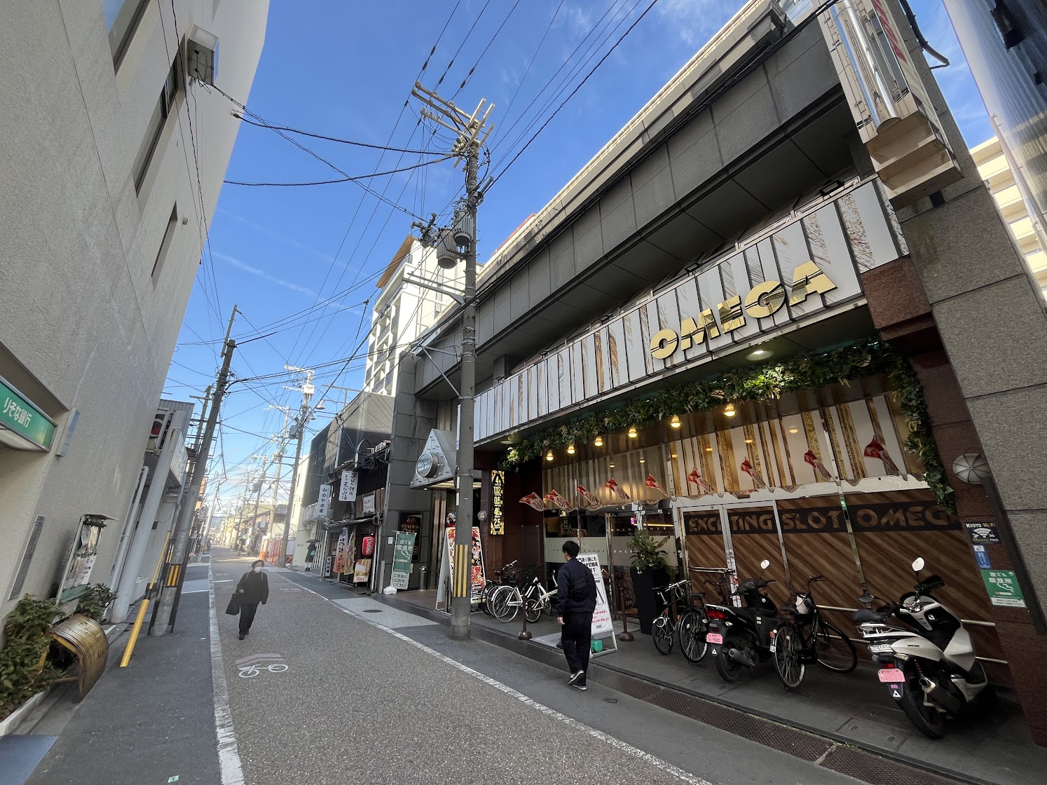 右手にパチンコ「大宮オメガ」、向かいには「りそな銀行」