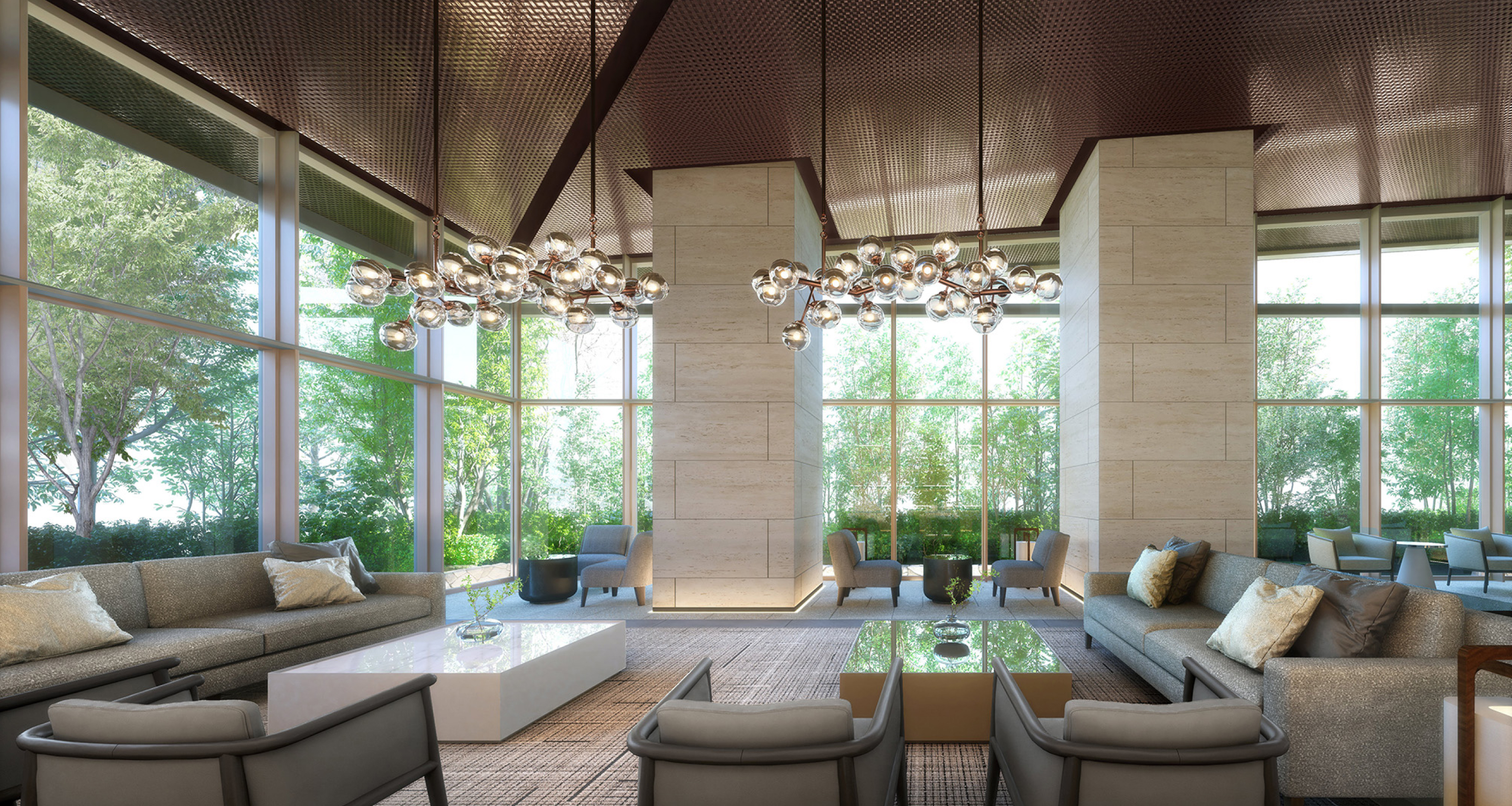 ラウンジからは外の植栽を楽しむことが出来るようになっており、外からの視界も遮られてて良いですね。