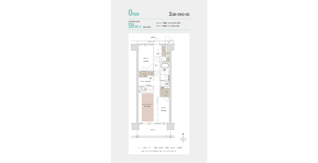 タイプO:2LDK+2WIC+SIC(59.5m²)