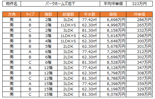 ここまで立地や専有部の仕様を見ていく限りはパークホームズのブランドバリューもあわせて魅力的に感じる方も一定いるのではないでしょうか!?もちろんタワマンと比較すると仕様や特に共用部については劣るところがありますが、実需として暮らしていく分には十分すぎると思います。さて皆さんお待ちかねの予定価格を見ていきましょう。※画像はクリックすると拡大できます