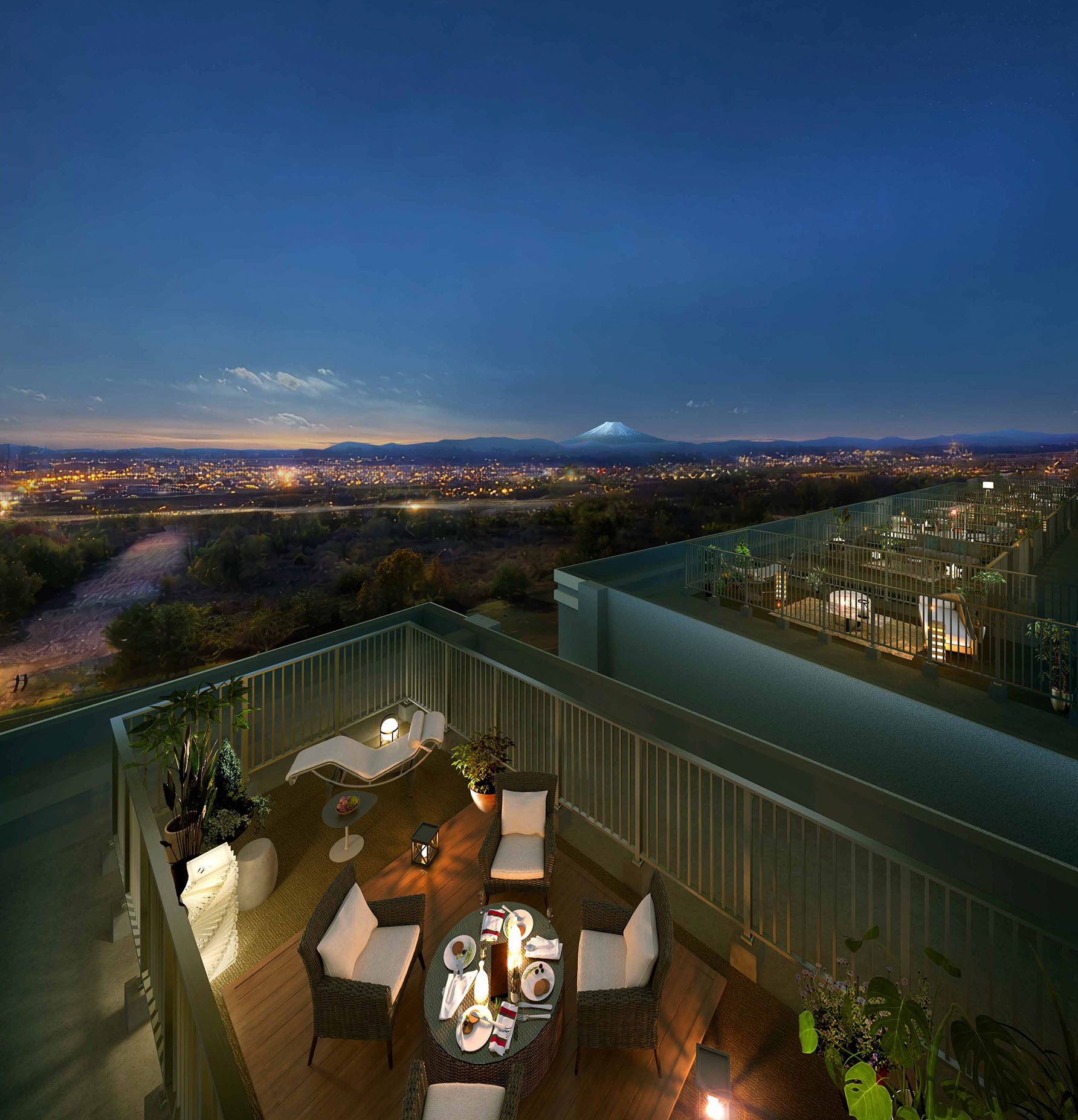 最上階の住戸にはスカイテラスがあり、より開放的な景色を楽しむことができます!贅沢〜!
