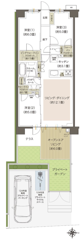 66㎡~133㎡と広専有中心の間取りを用意してくれています。