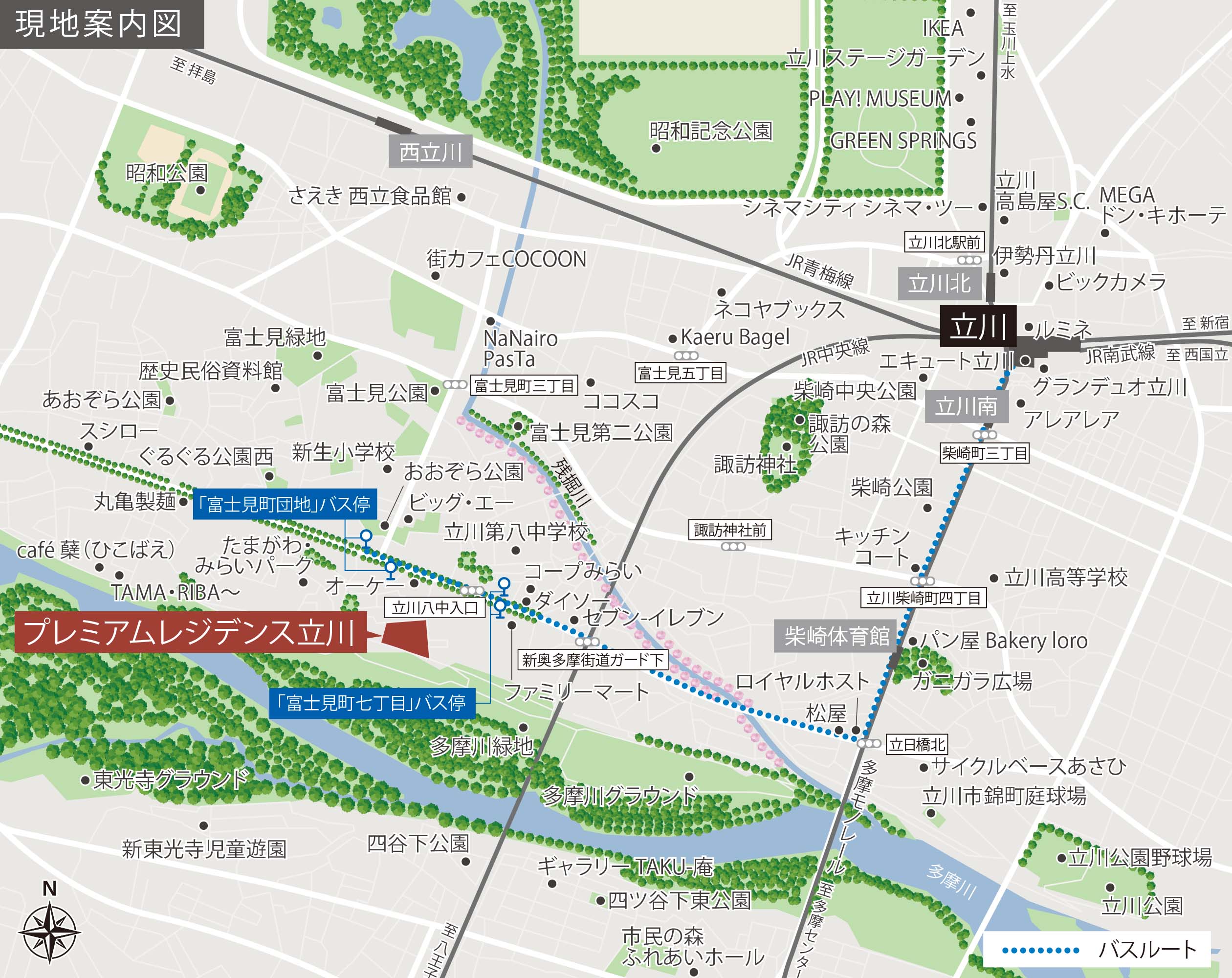 所在地:東京都立川市富士見町六丁目313番1他(地番)交通:JR中央本線・南武線「立川」駅 バス約9分、バス停 徒歩4分