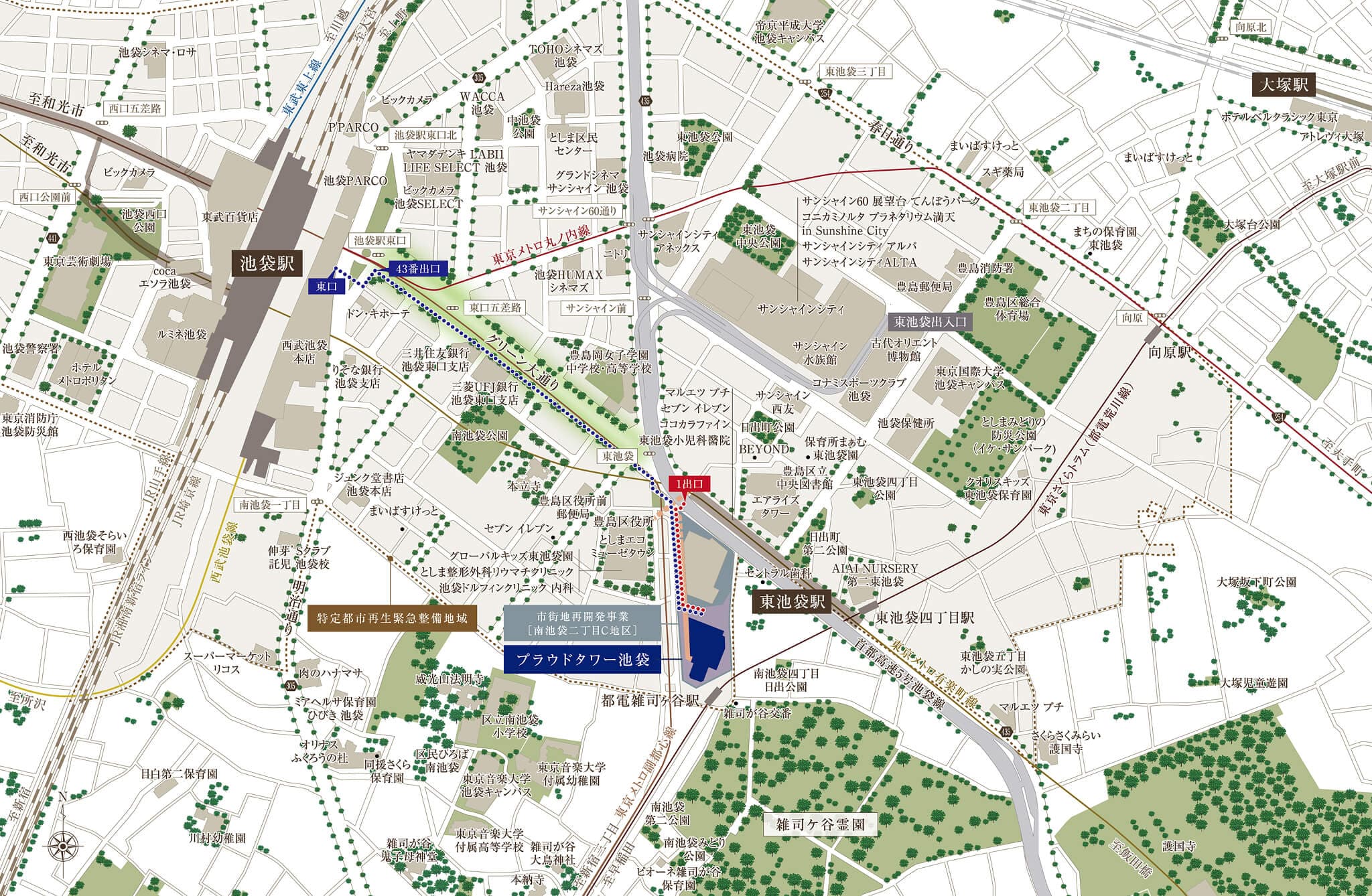 「東池袋」駅直結! 「池袋」駅も徒歩圏内の「プラウドタワー池袋」