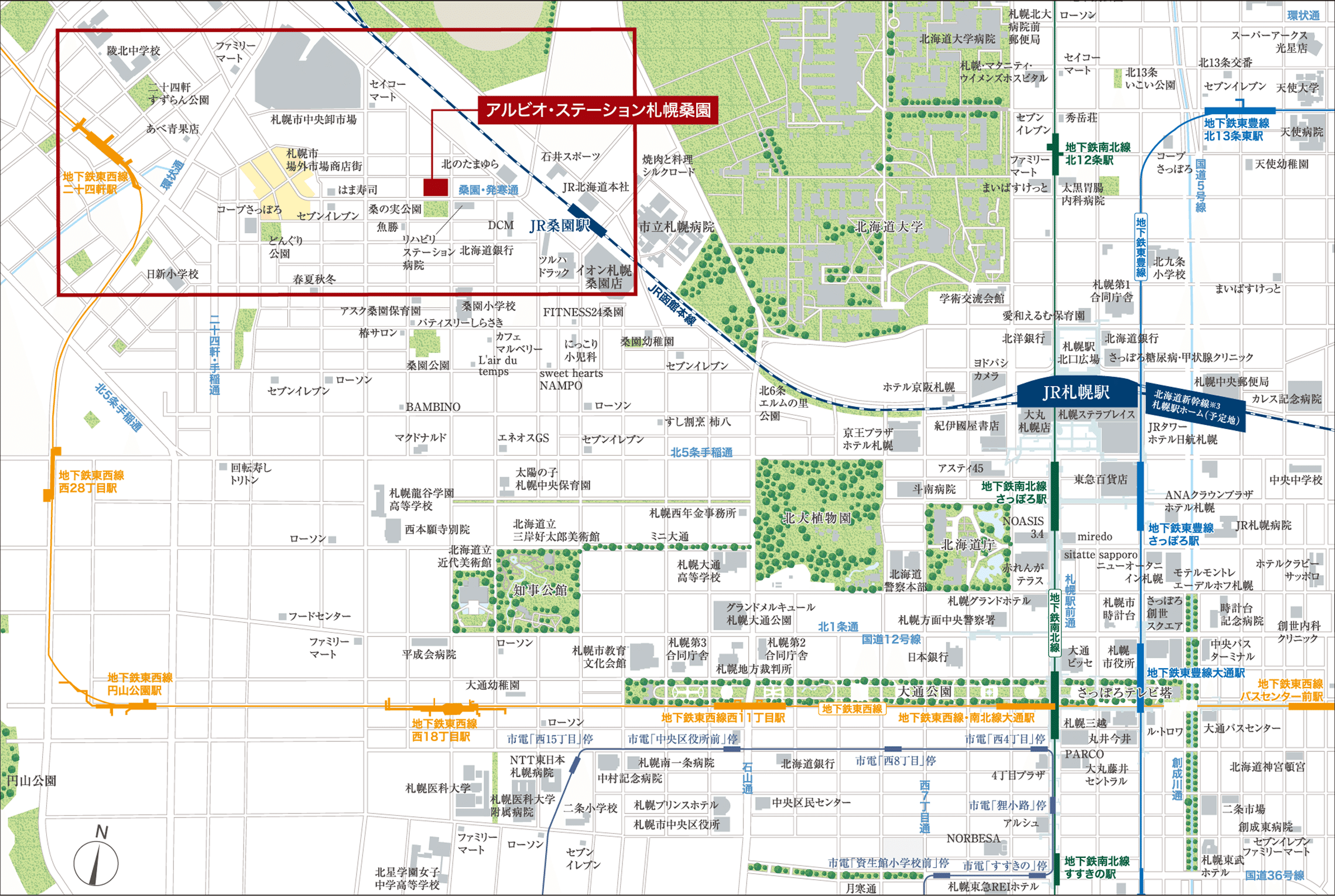 JR「桑園」駅が徒歩6分でメイン。