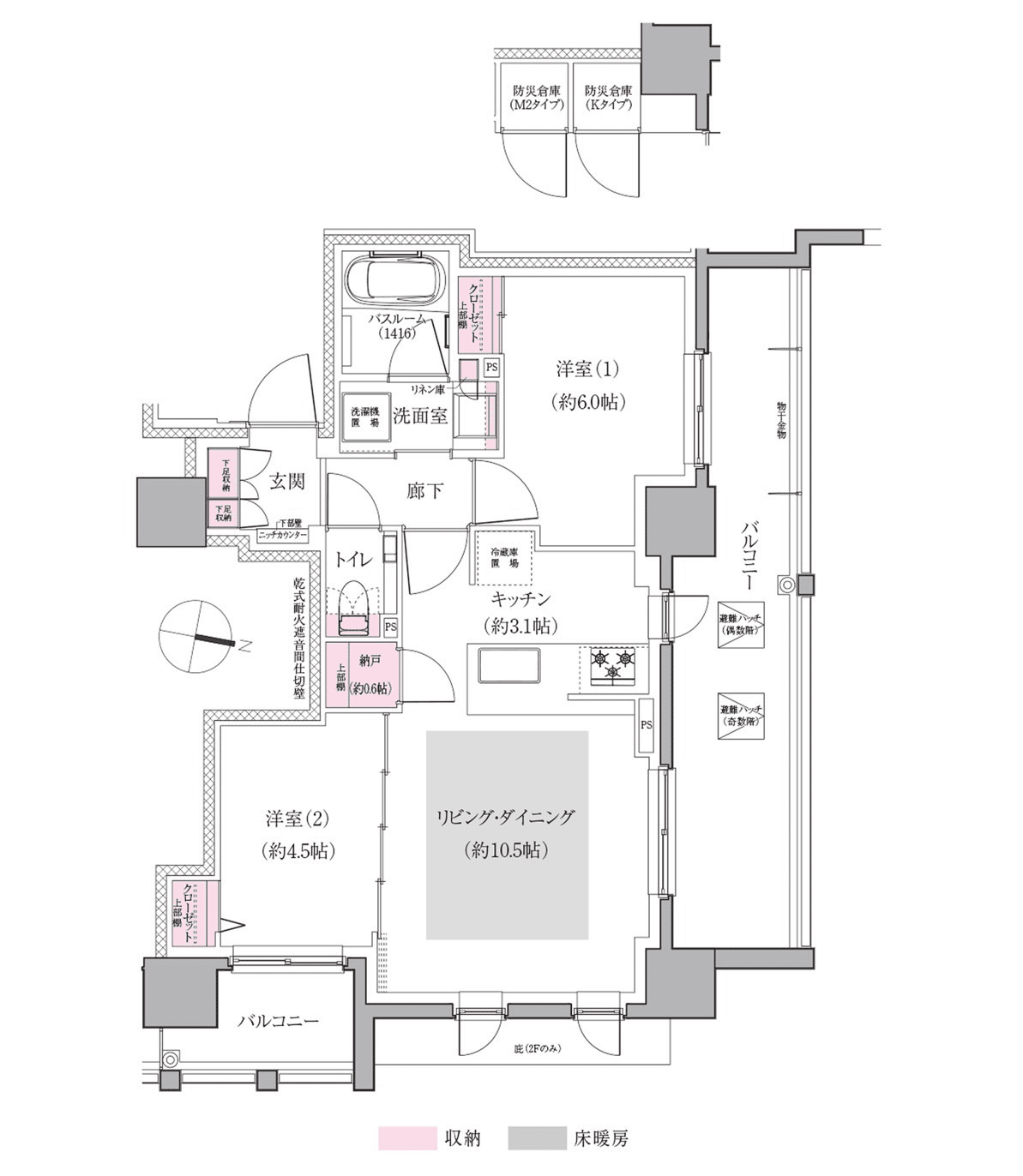 - 総戸数(EAST):57戸 2LDK(21戸)/3LDK(26戸)/4LDK(10戸)