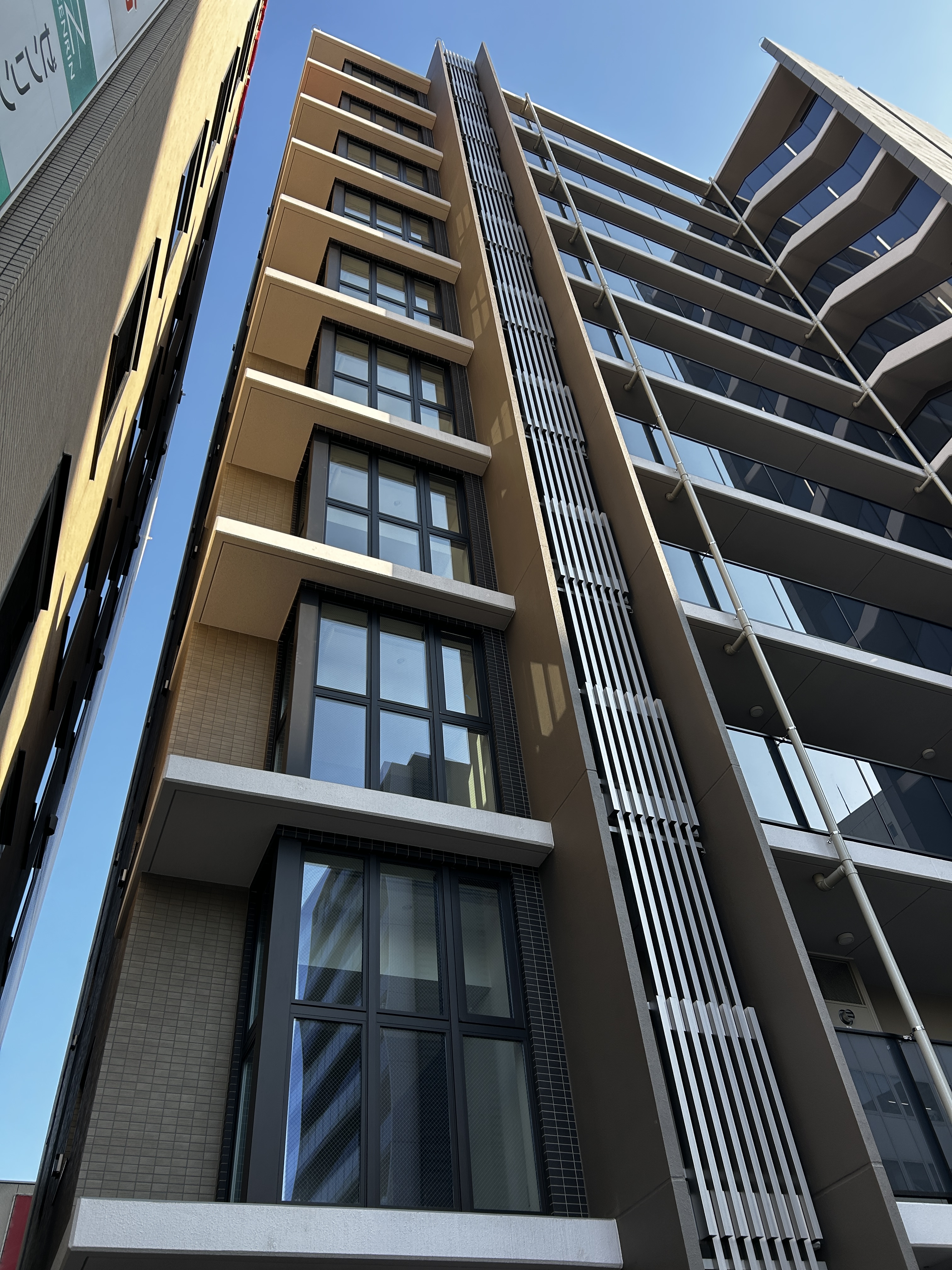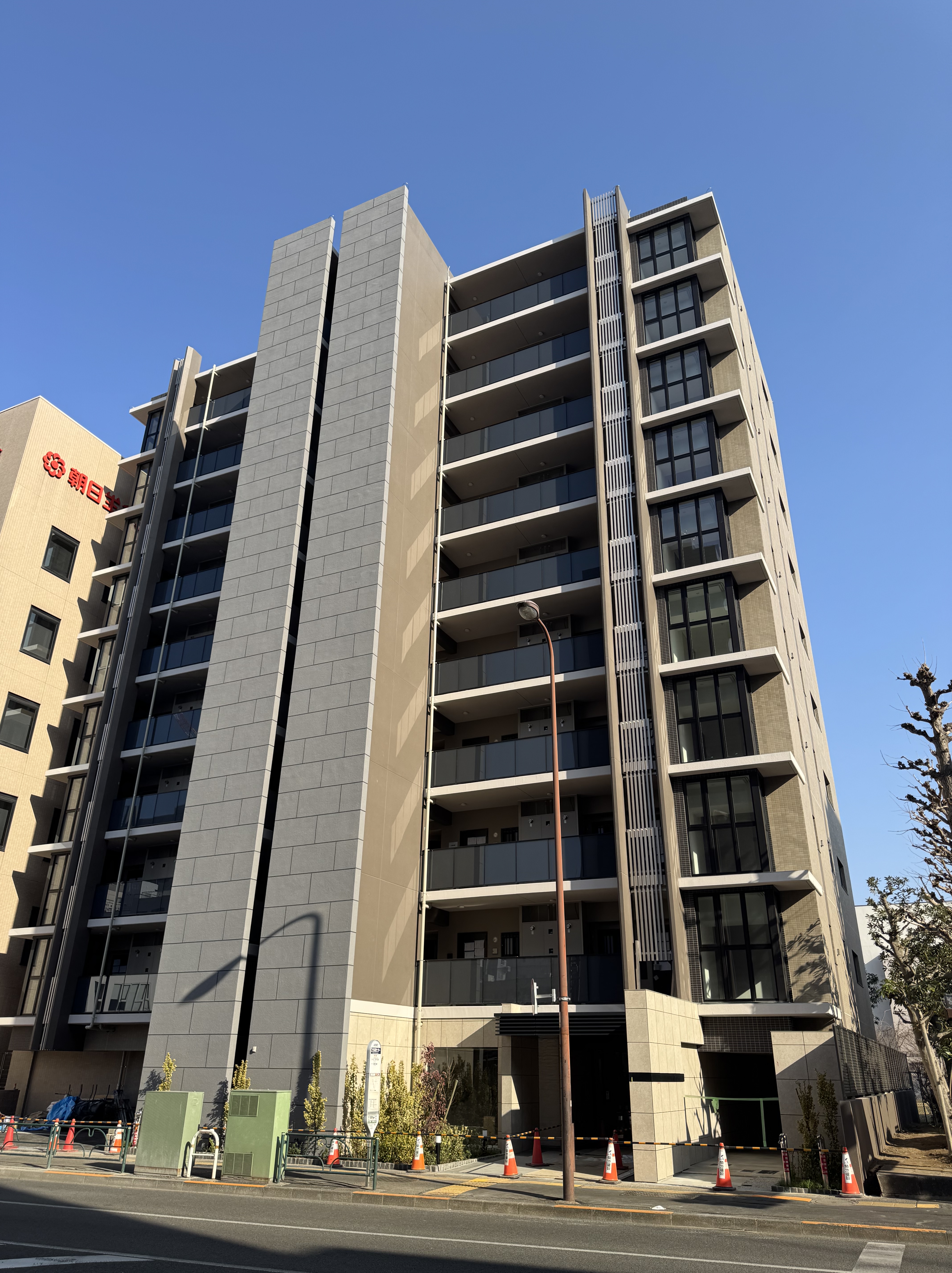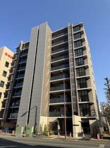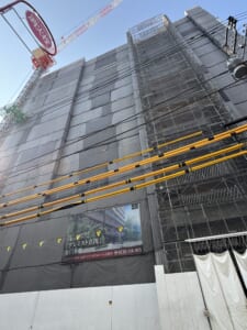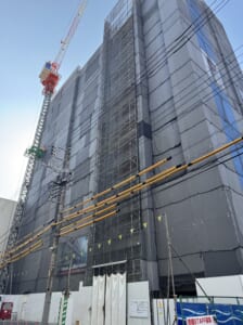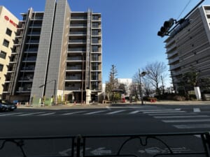周囲に高い建物が多いとはいえ、15階116戸の規模感は圧倒されます。視認性が高い立地ではないものの、竣工すれば相当存在感のあるマンションになりそうで、竣工が楽しみです!