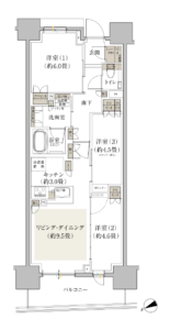 ▼Aタイプ3LDK 70.94㎡ 南東向き角住戸