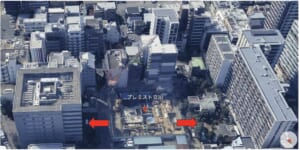 大通りから見えるのは一部分ですが、敷地配置図を見るとL字型のような敷地をしており、通りの反対側にも住棟があります。立地としては非常に視認性がある場所なので、完成すればこの立地だけに羨望の眼差しが向けられることでしょう!