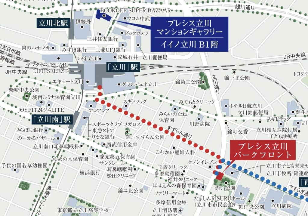所在地:東京都立川市錦町1-370(地番)アクセス:JR中央本線「立川」駅まで徒歩7分、JR南武線「立川」駅まで徒歩7分、多摩都市モノレール「立川南」駅まで徒歩8分