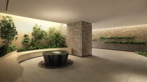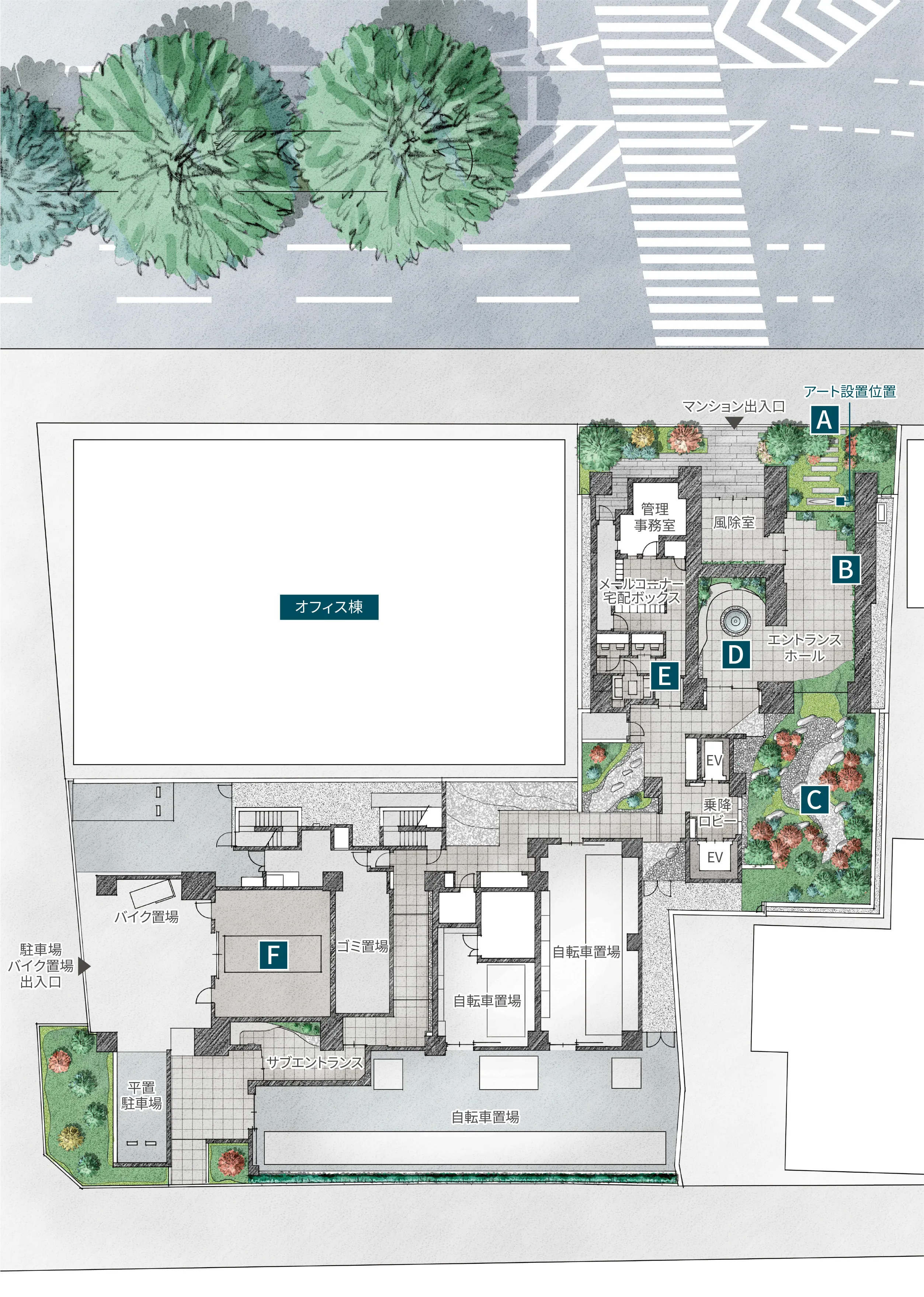個人的に好みなのはアート・自然が融合したエントランスです。壁面緑化は生きた植物で作られています。パブリックアートを楽しめるファーレ立川が本件からほど近いことも意識し、ファーレ立川に呼応するアート作品がエントランスに設置される予定です。