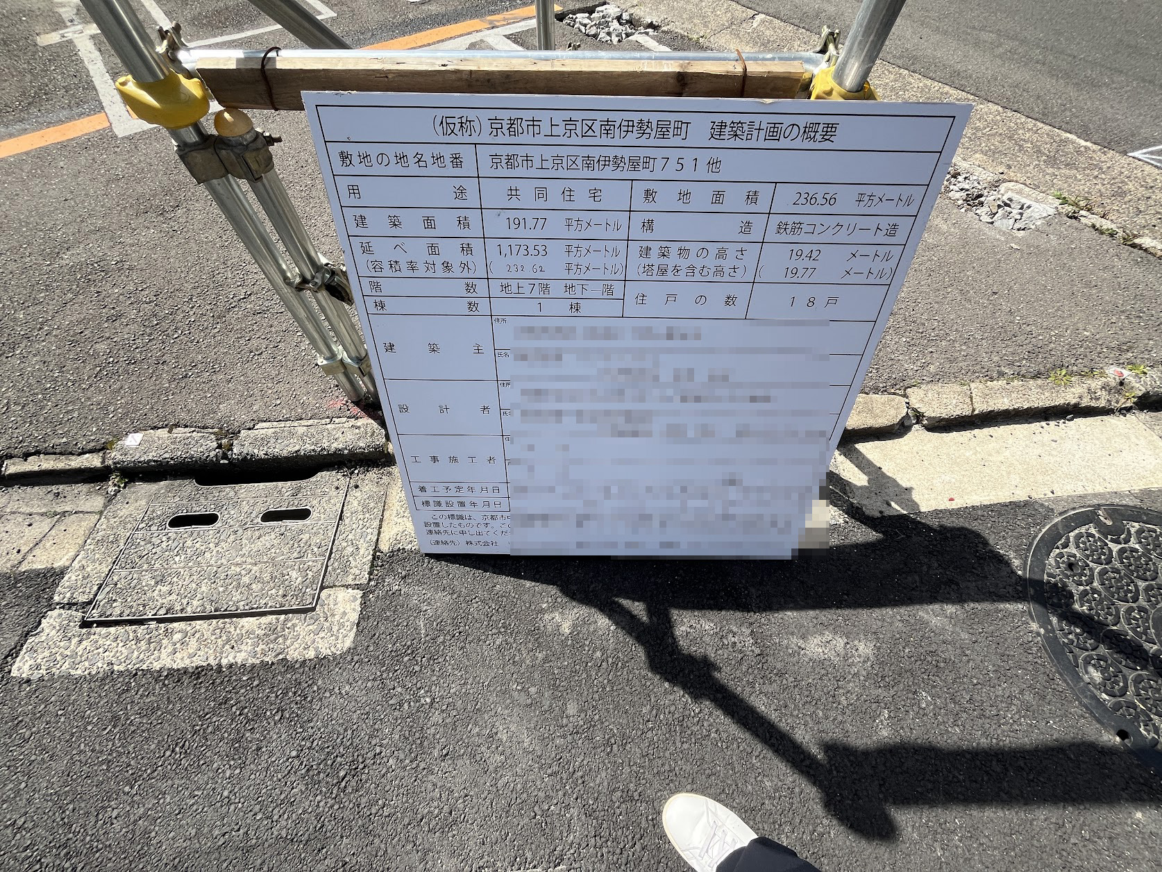 マンションが通りを挟んで北側と南側で2棟計画されています