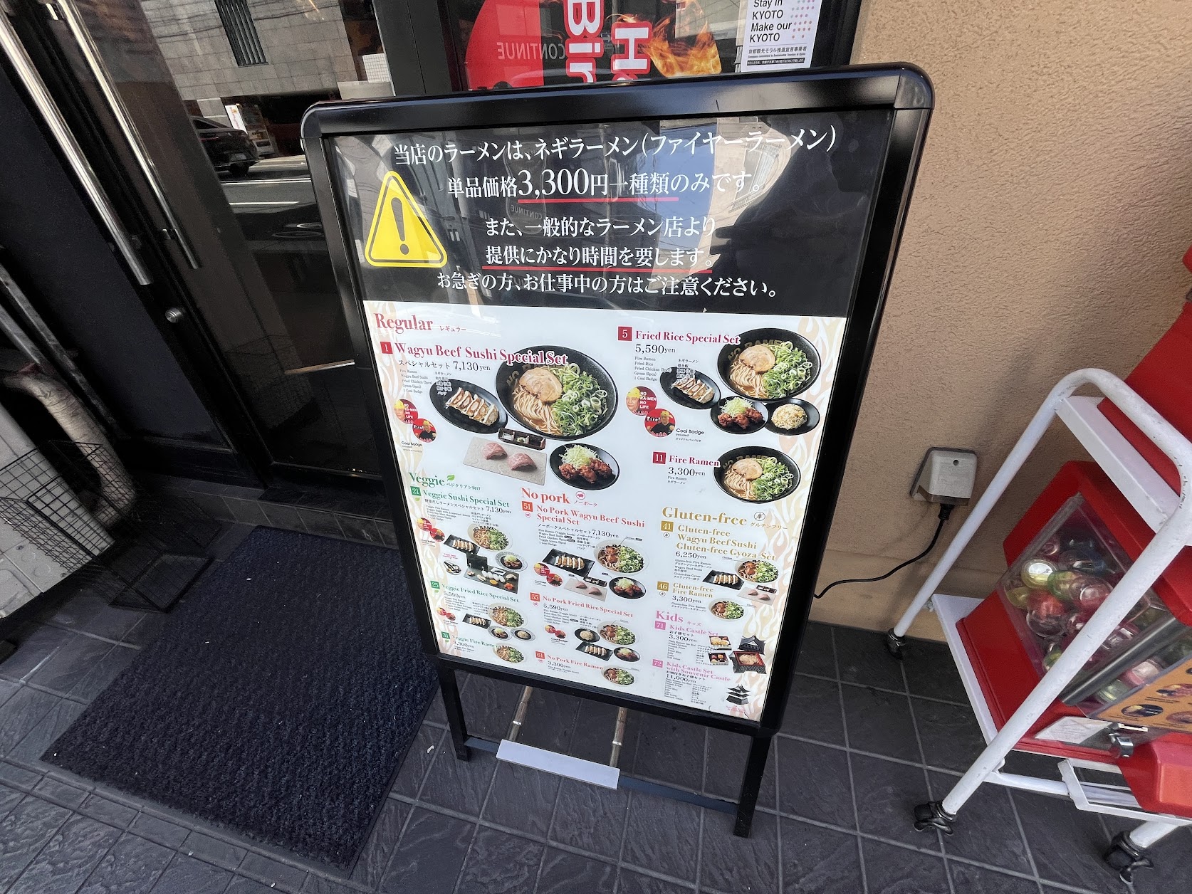 30年以上前からあるネギラーメン(ファイヤーラーメン)。学生の頃30年前に来た時は関西ウォーカーに取り上げられるぐらいでしたが、今や世界を相手にインバウンド向けエンターテイメント体験になっています。価格は3300円!