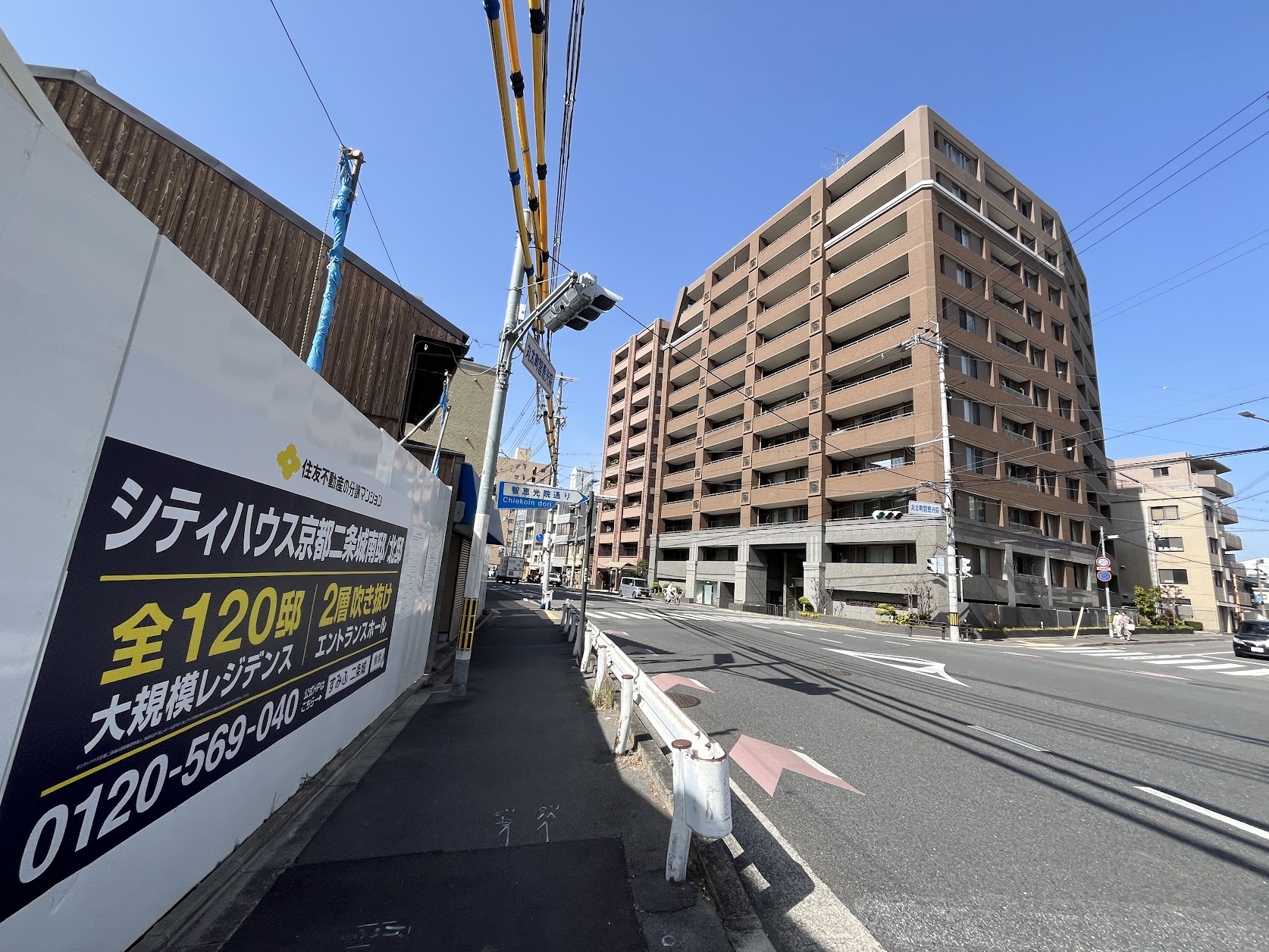 柴半からさらに西へ。現在も販売中の新築分譲マンション『ヴェリテ元離宮二条城/南海不動産』