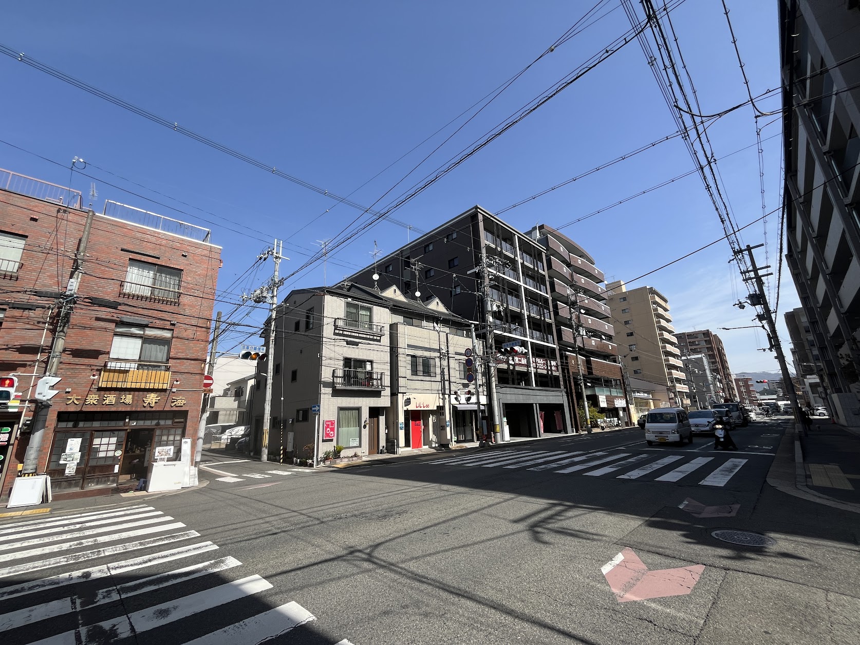 北側の丸太町通沿いにはコロナ後に開業したカプセルホテル「コンテニュー二条城北」(2024年5月開業)その一軒挟んで東には「ホテルリブマックス京都二条城北」(2019年4月開業)。当時、この辺りがホテル立地に思えずかなり違和感がありました