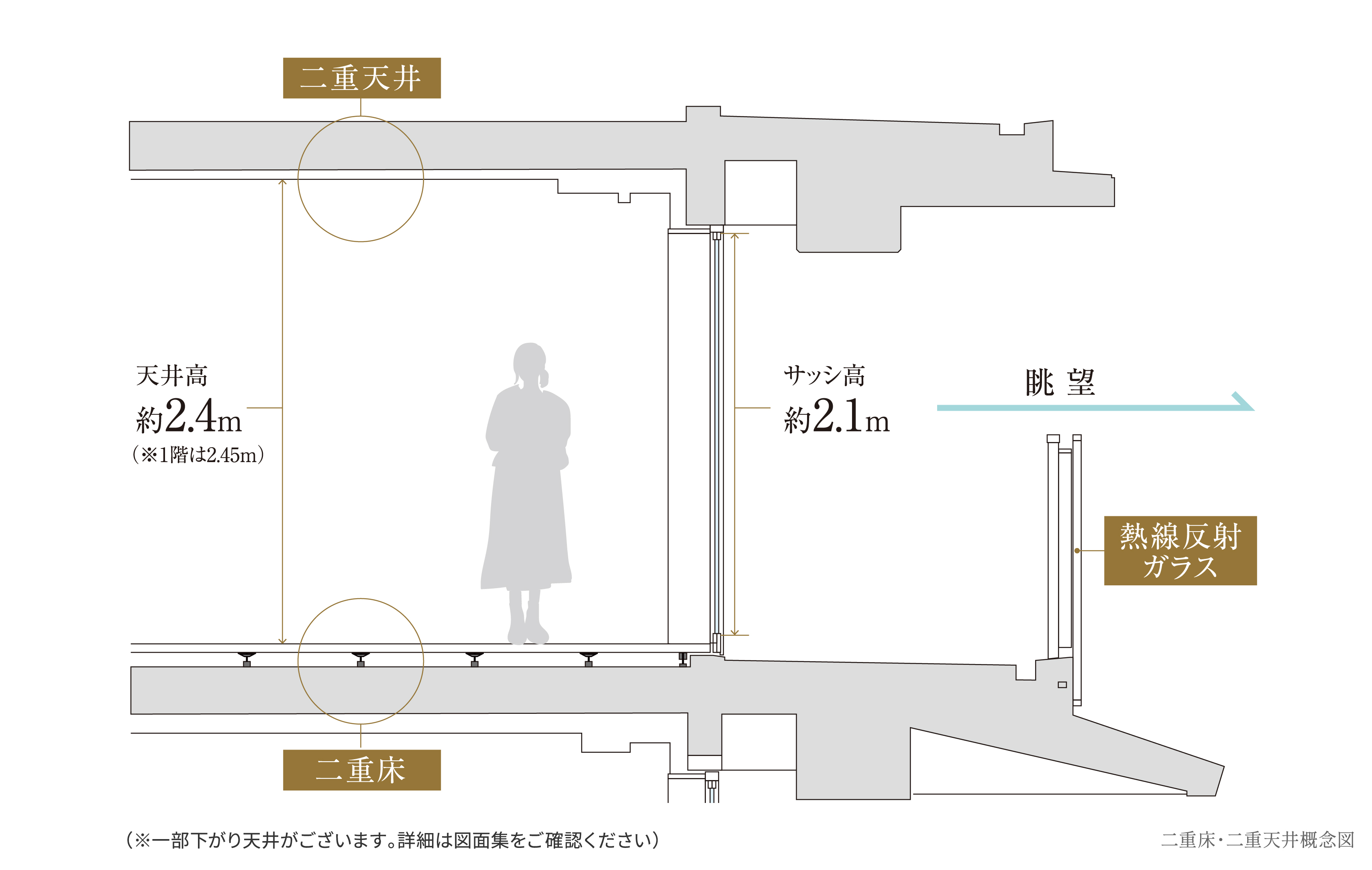 メンテナンスに配慮した二重床・二重天井設計は「プラウド京都高瀬川」と同じですね