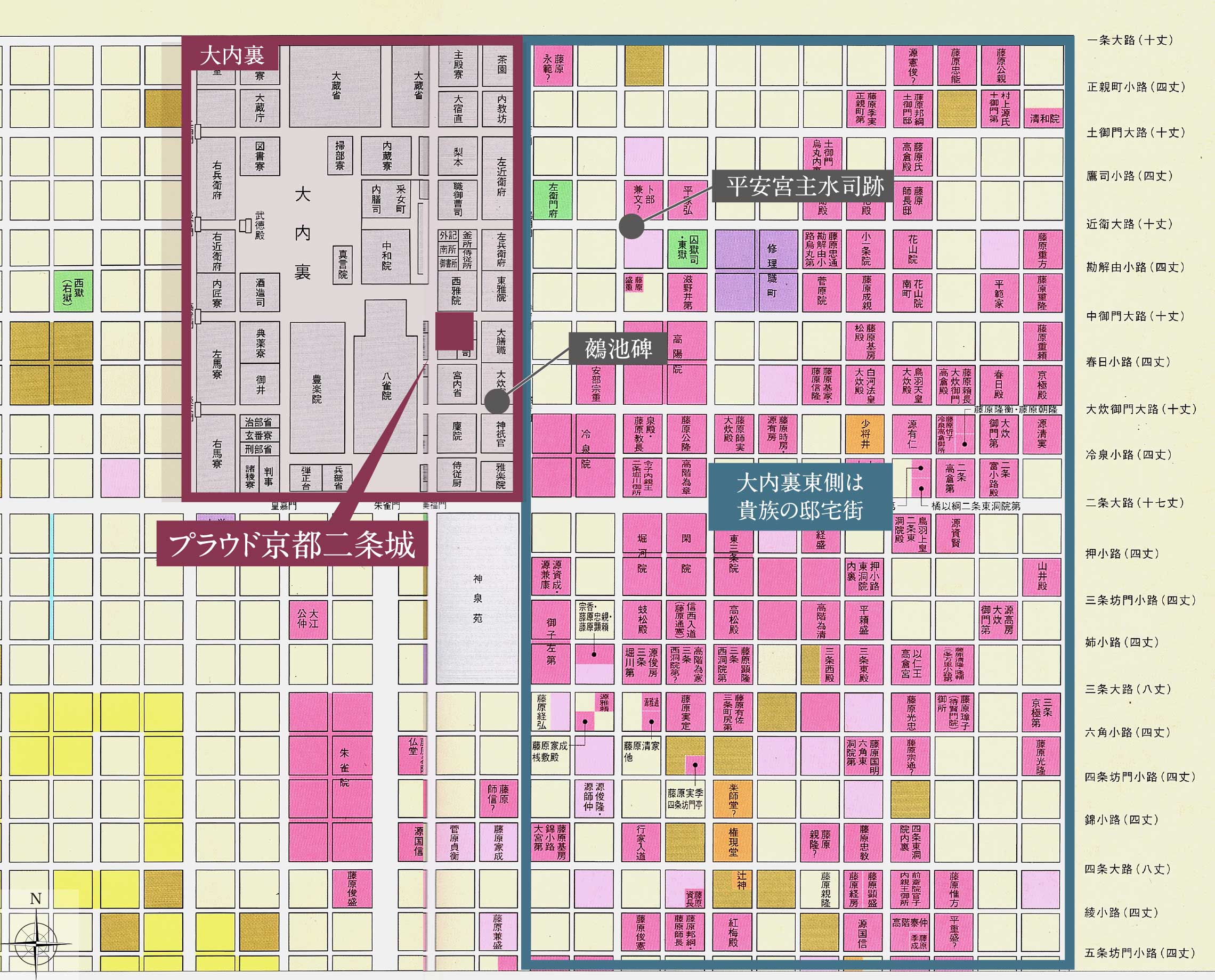 「プラウド京都二条城/野村不動産」の公式HPには平安京「大内裏」参考地図が掲載されています。