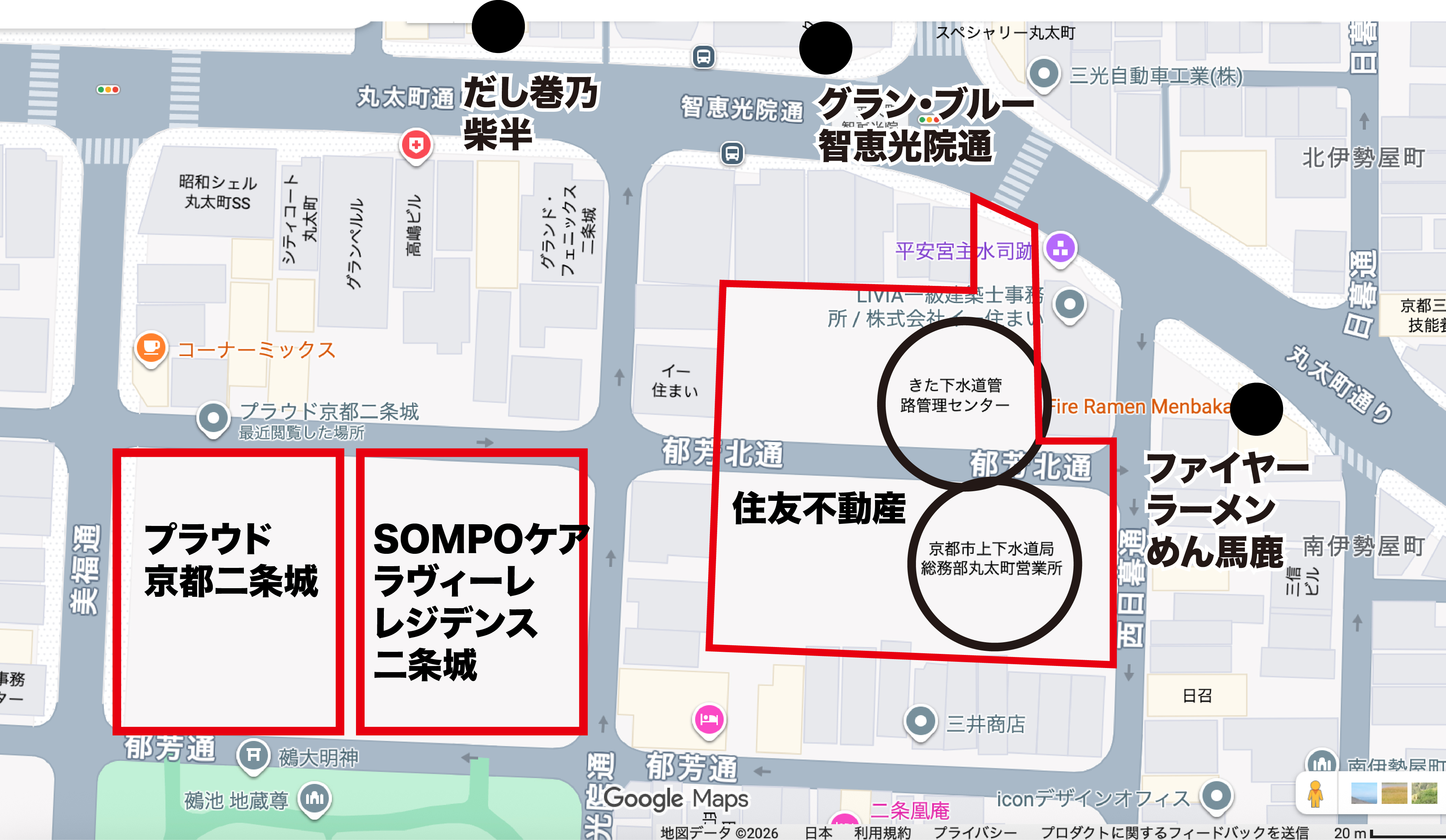 新築分譲マンション『プラウド京都二条城』か、老人ホーム『SOMPOケア ラヴィーレレジデンス二条城』か