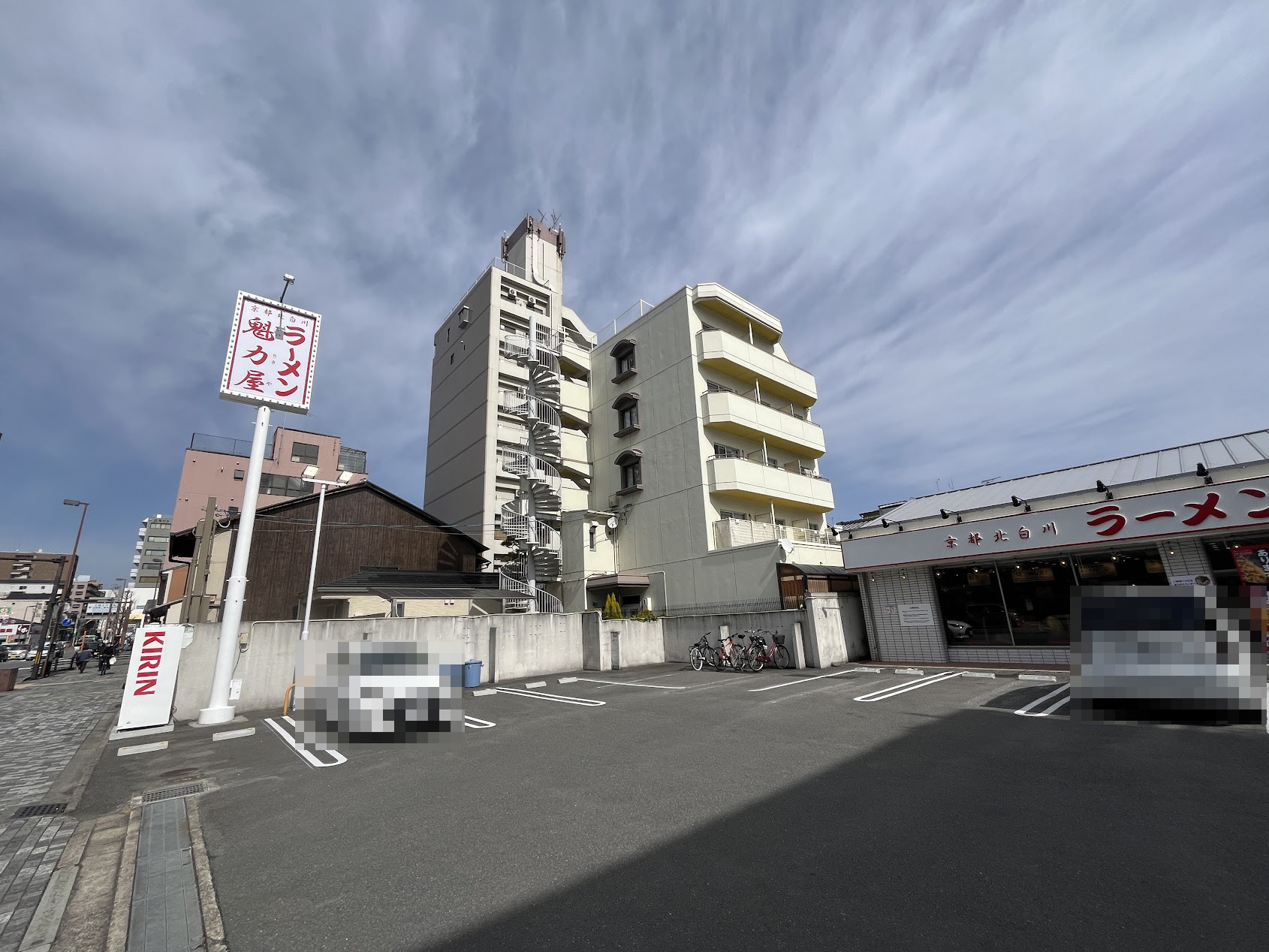 御池通沿いの7階建。子育てファミリーにはたまらない「くら寿司」横というロケーション。