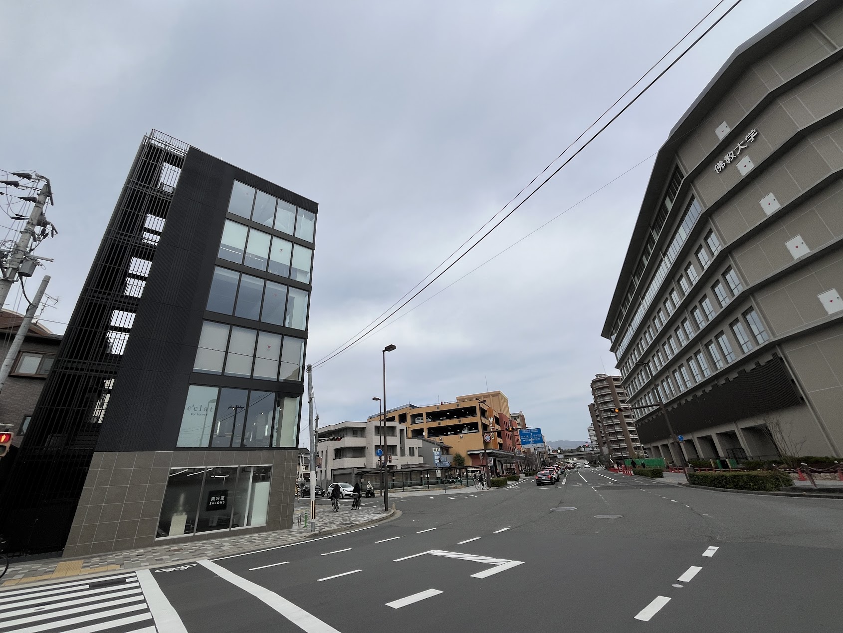 佛教大学の新キャンパスの交差点にはテナントビルが建設されました