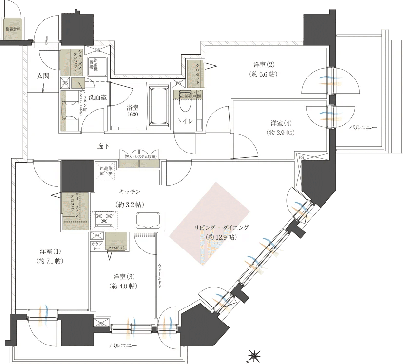 Atype:4LDK/86.10㎡/6,578万(13階)