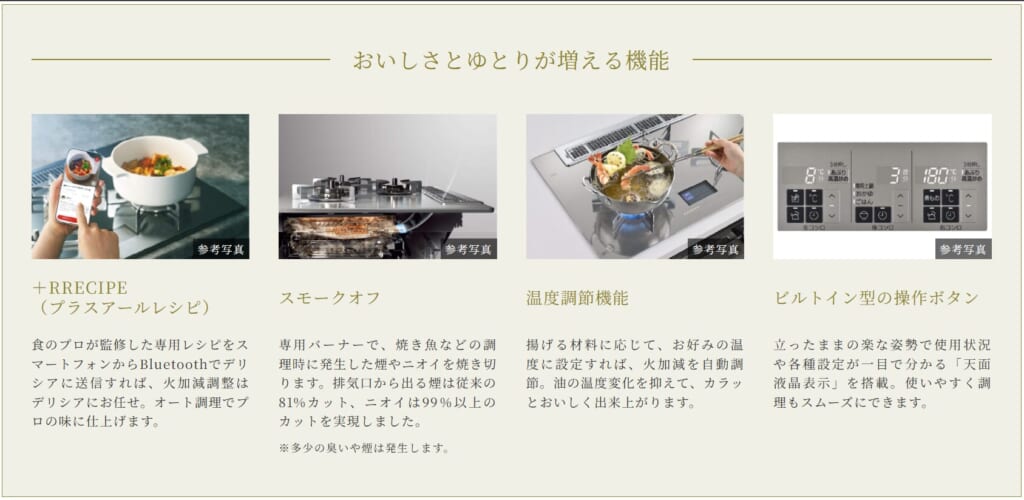 - 高性能ガスコンロ(オート調理、温度調整、タイマー機能が嬉しいです