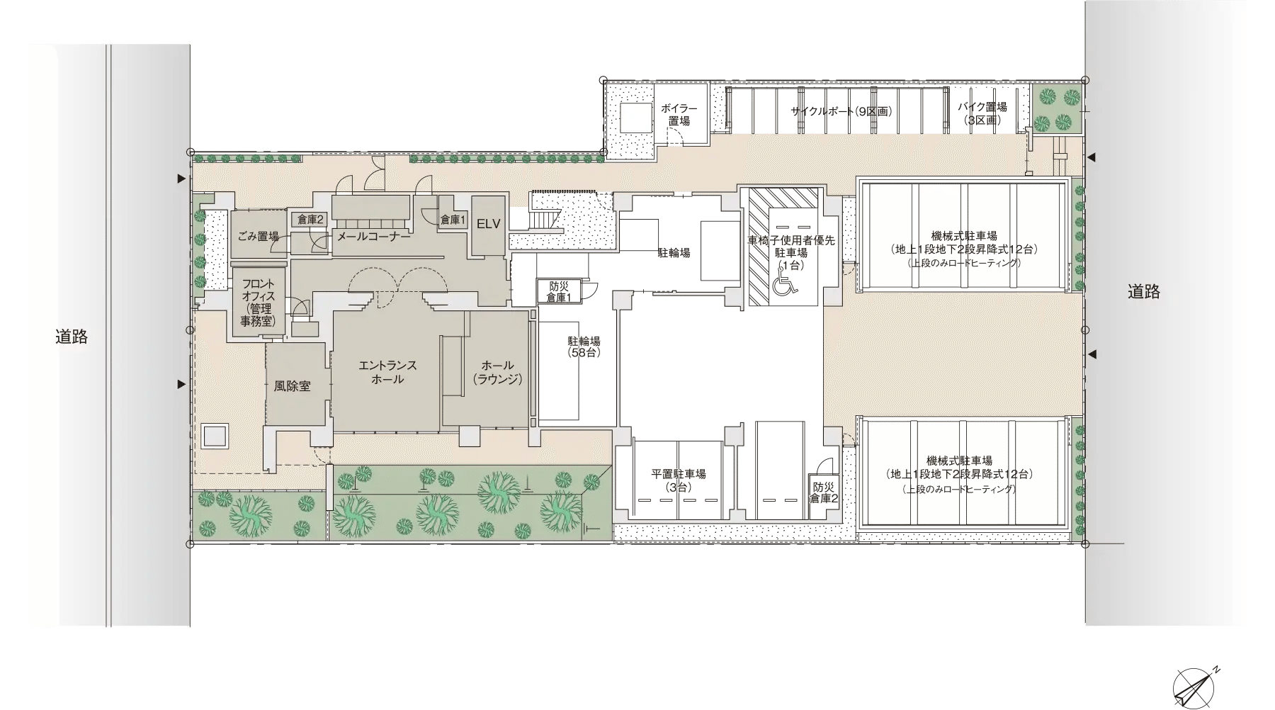 - 自転車置場総台数:58台(月額使用料:100〜300円)